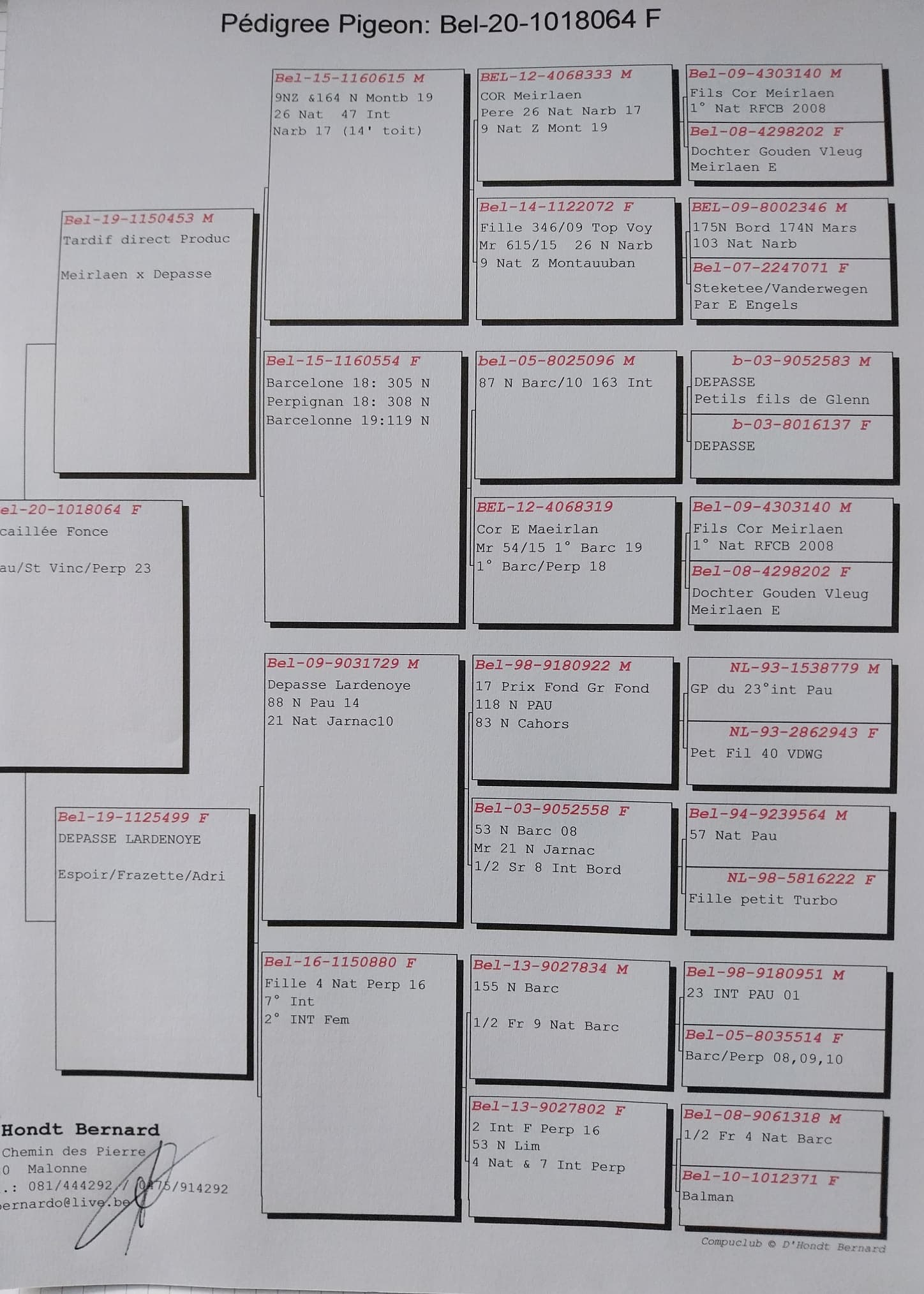 This hen is a daughter of “453/19” breed Etienne Meirlaen x Depasse Lardenoye x “499/19” direct Depasse Lardenoye.