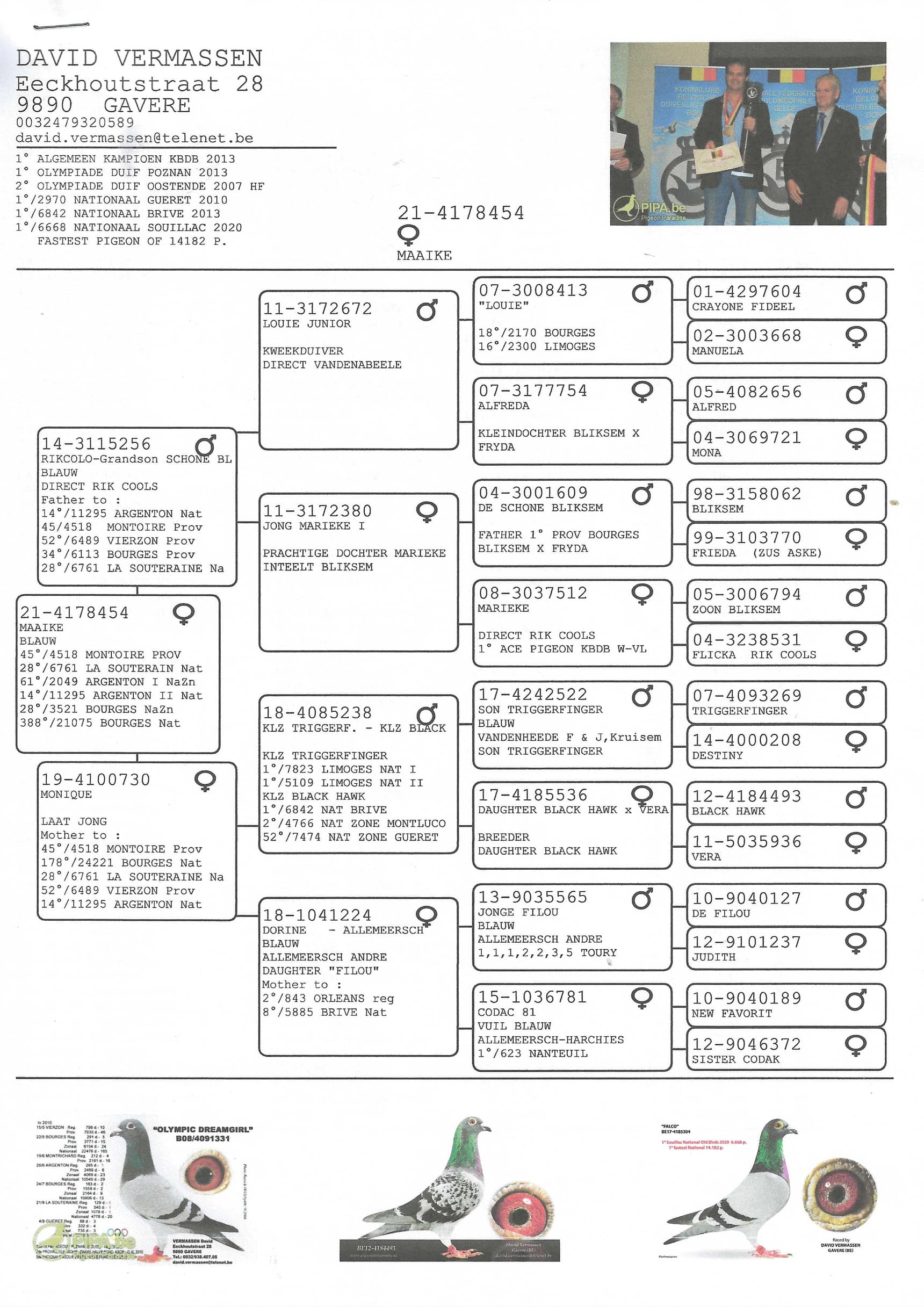 Son of “672/11” Louie Junior Gaby Vandenabeele x “380/11” Daughter Marieke Rik Cools