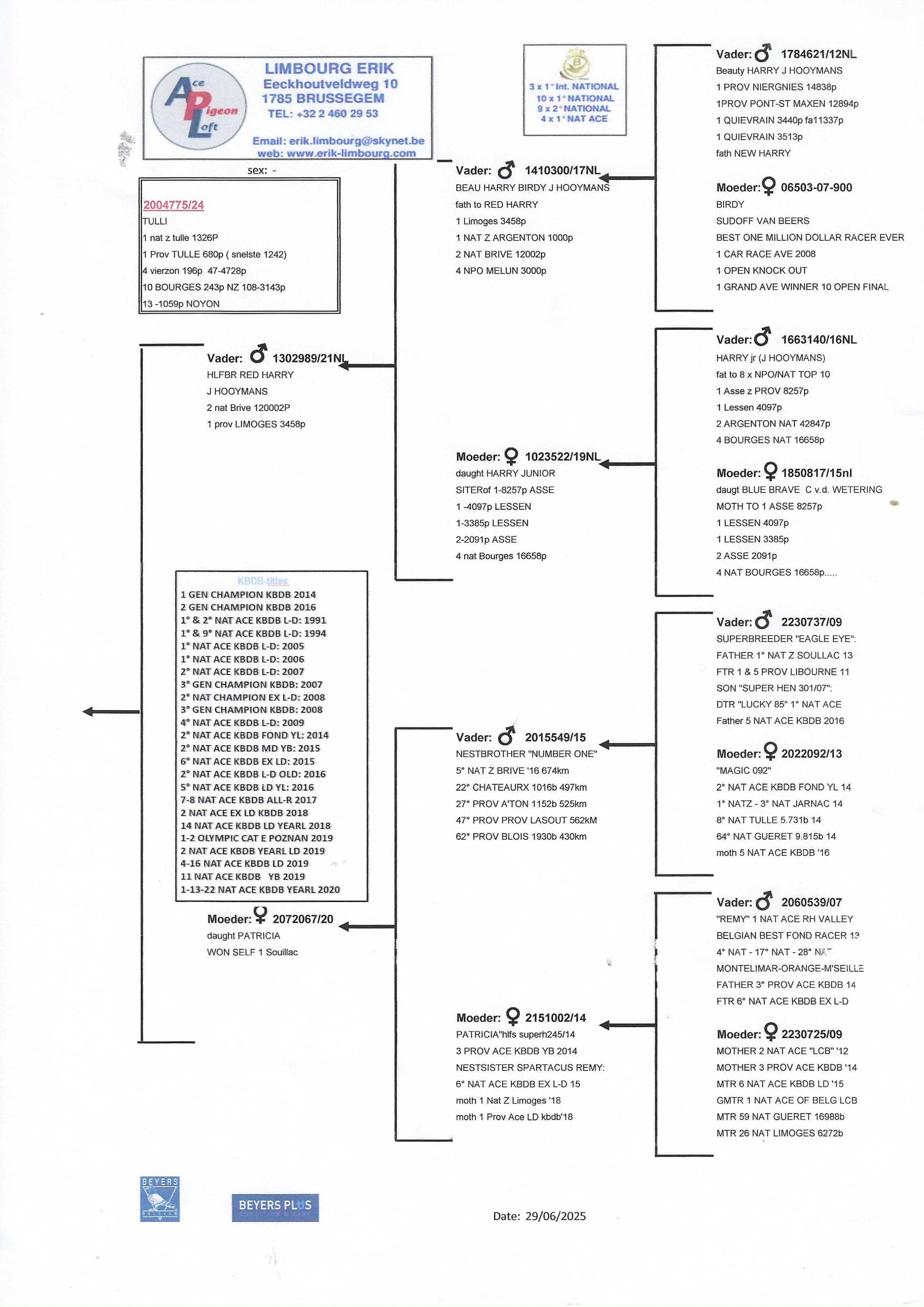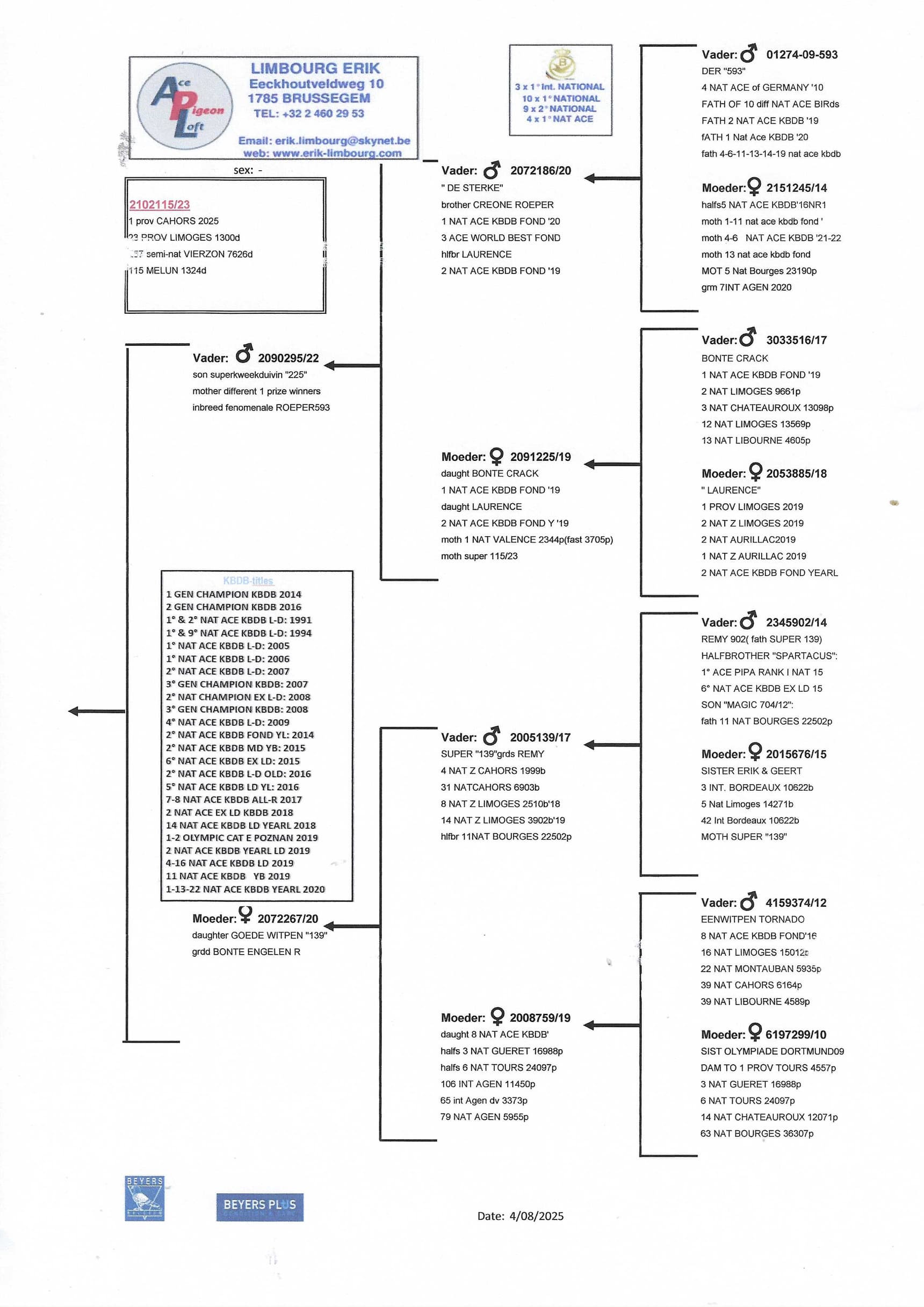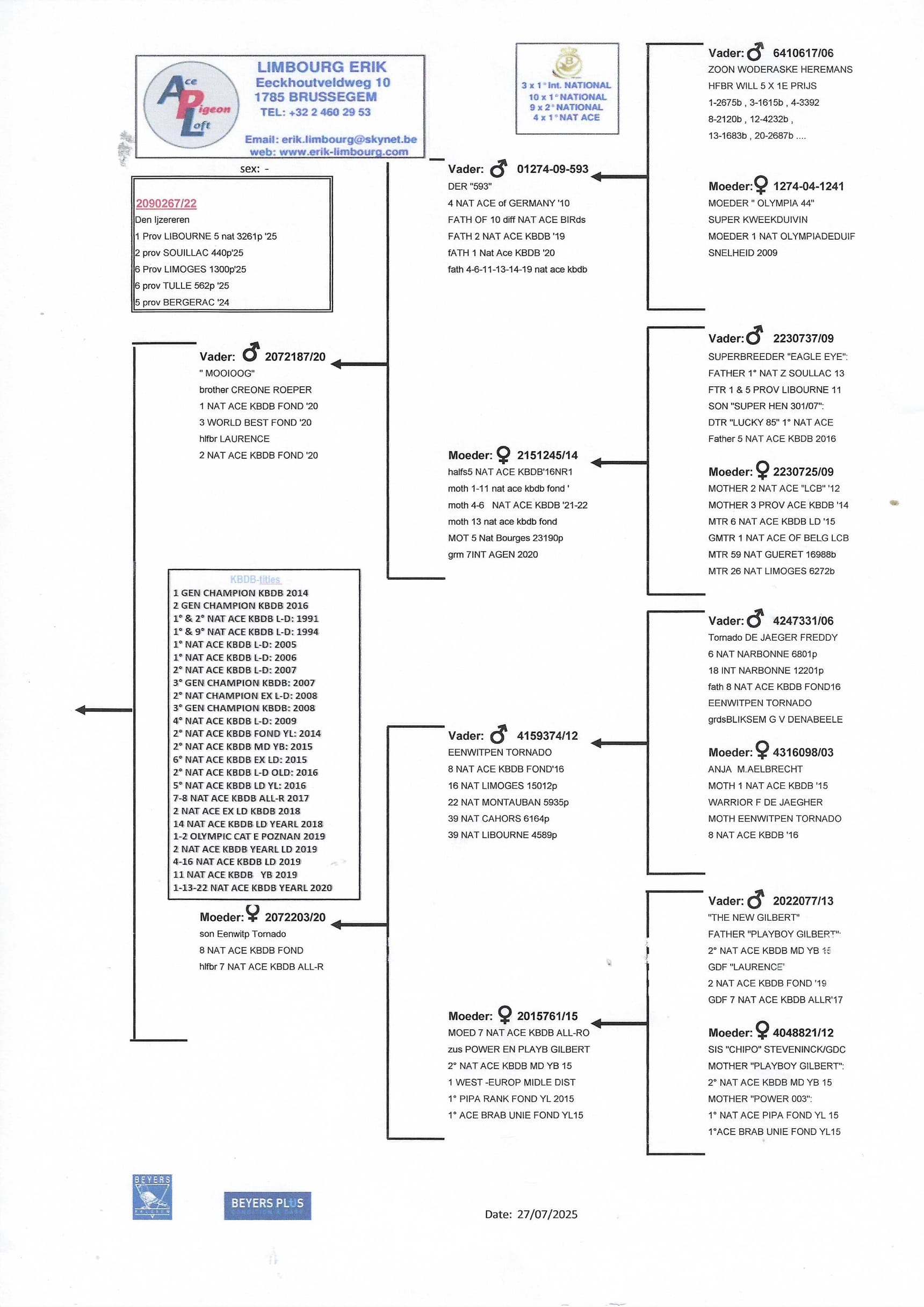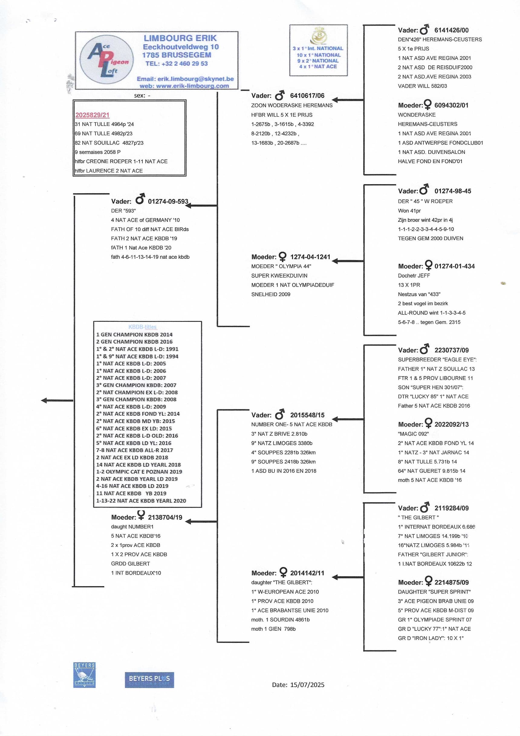 erik limbourg (brussegem) ends his season with several national ace pigeons in the long distance