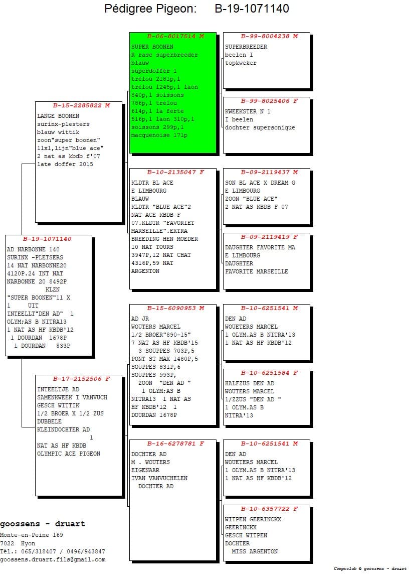 No unknown name in the pigeon world and then we are talking about the man-woman combination Ingrid Goossens and Jean-Pierre Druart from Hyon (situated in the neighbourhood of Mons). On their list of honour are already 2 national victories namely from Irun and from Montélimar. But these are not the only achievements of this strong Walloon colony. Also in 2020 they knew to be among the best and that resulted in the following top results: