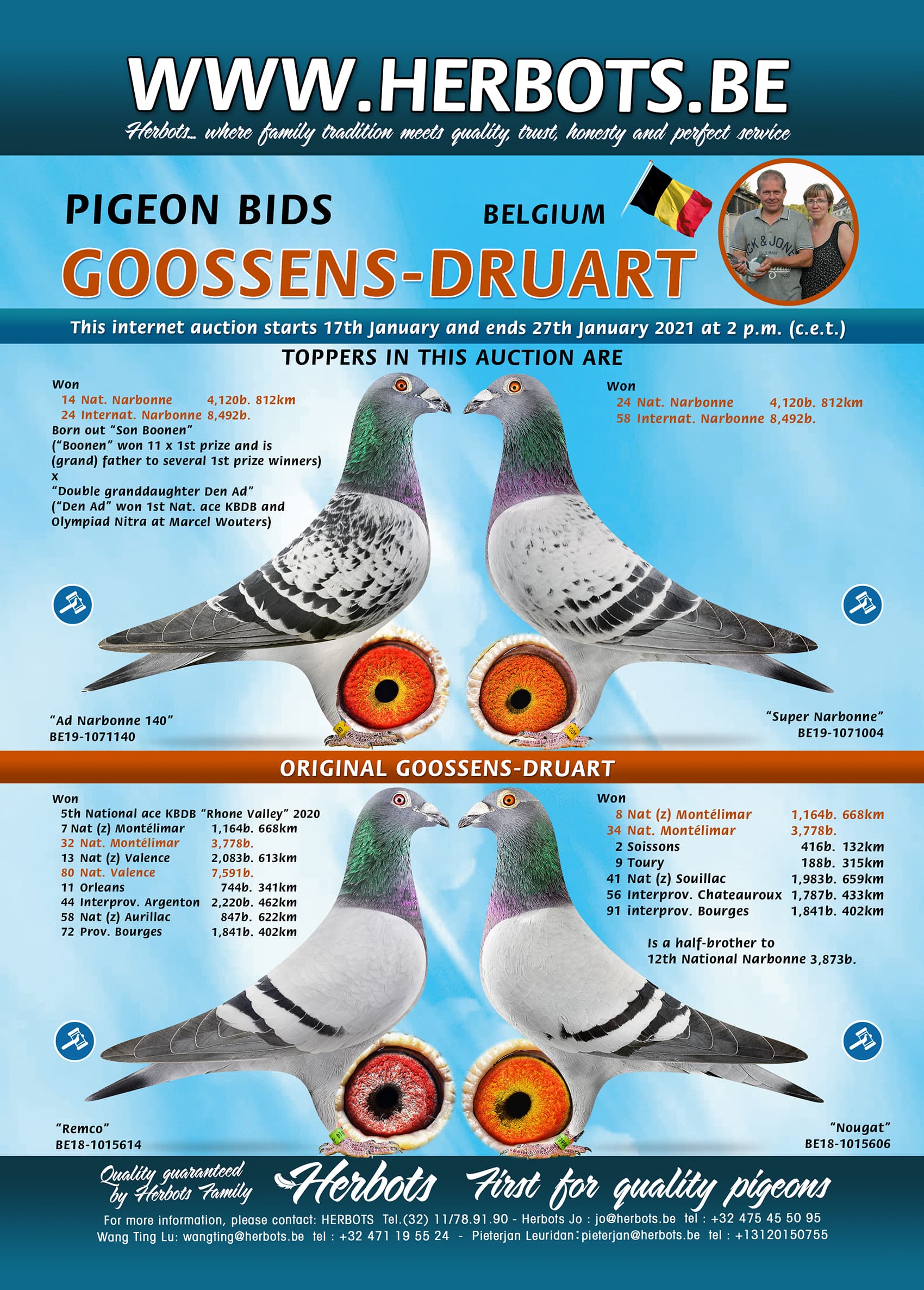 Specially for internet auction Pigeon Bids made a strict selection and offer the following top birds for sale: