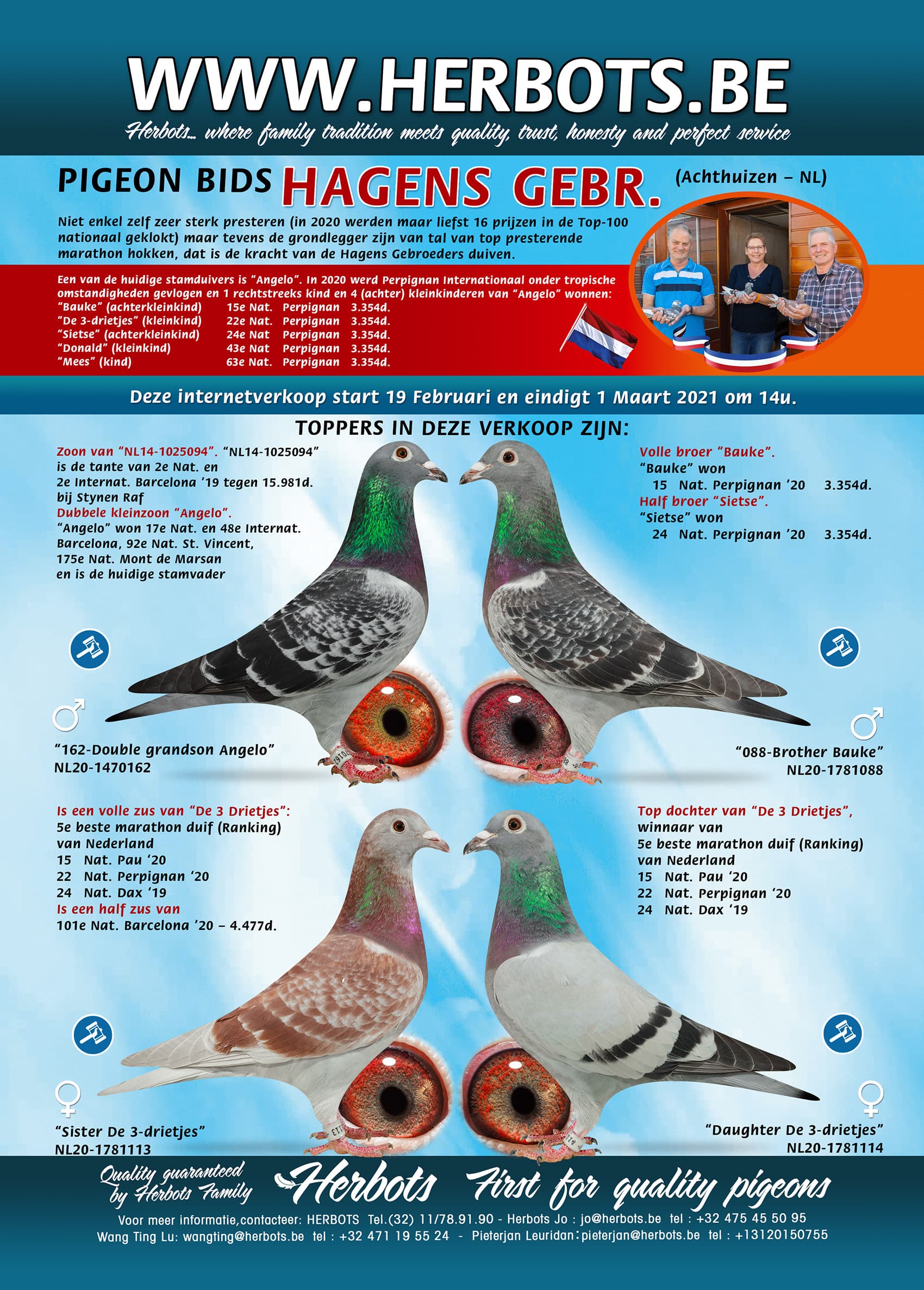 Do you also want to enjoy the class of the Hagens Bros. pigeons….don’t hesitate and make your move on the current online auction PIGEON BIDS HAGENS GEBROEDERS