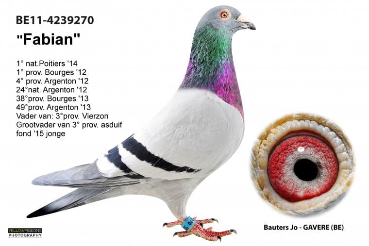 Let us go back to the summer of 2014. After Bourges and Chateauroux, Poitiers was the 3rd National greater middle distance race of the season? No less than 12,377 pigeons were at the start and these were being released at 08h30 with a clear blue sky and a north-eastern wind. “On these kind of races class is showing always” is what experts say and they were right as the biggest champion became “Fabian” (B11-4239270). A class full cock that already showed off before his top result out of Poitiers with underneath results: