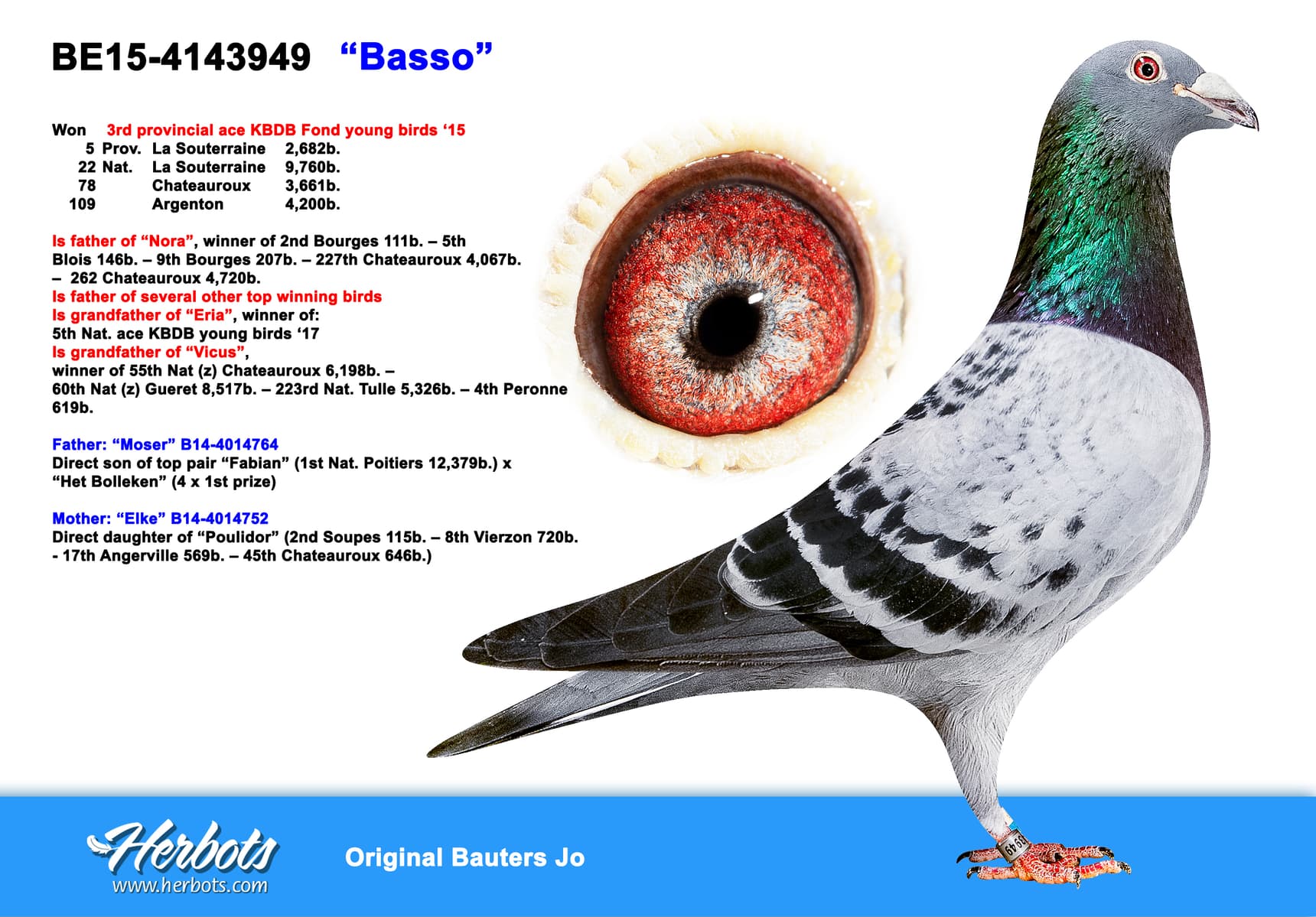 “Basso” became father to ao: “Nora” (winner of 2nd Bourges 111b. – 5th Blois 146b. – 9th Bourges 207b. – 227th Chateauroux 4,067b. – 262nd Chateauroux 4,720b.)