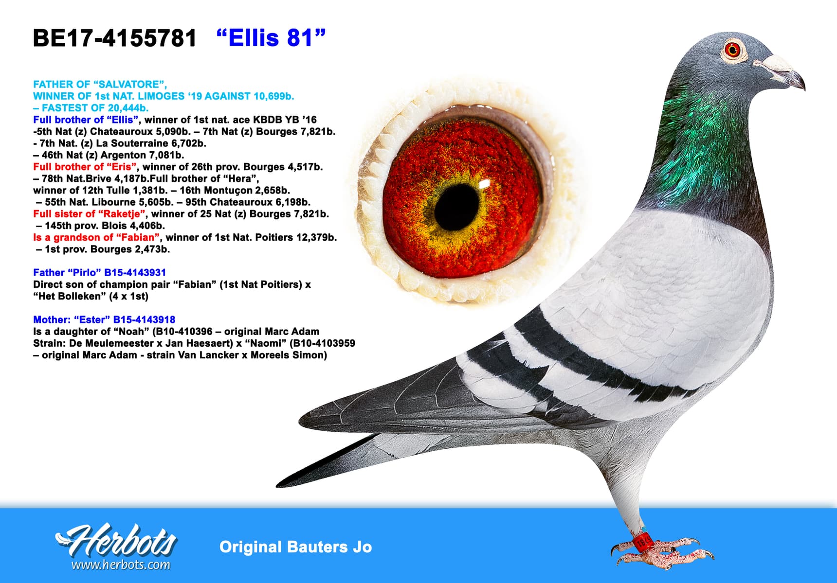 The father to “Salvatore” is “Ellis 81” and this amazing cock is a full brother to the 1st National Ace Bird KBDB LD youngsters “Ellis” or in other words, the fabulous breeding line from “Fabian”!