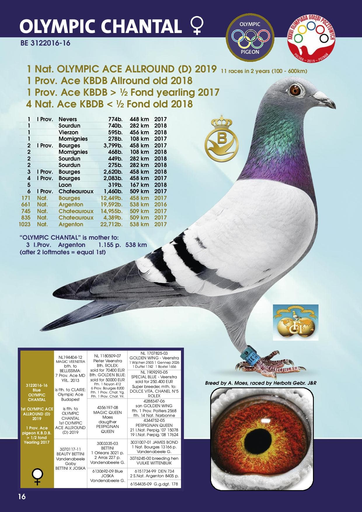 A small detail is that the mother of the 1st pigeon is also the grandmother of the 2nd pigeon (11th Provincial). She herself won 3 first prizes and then became a true top breeder.