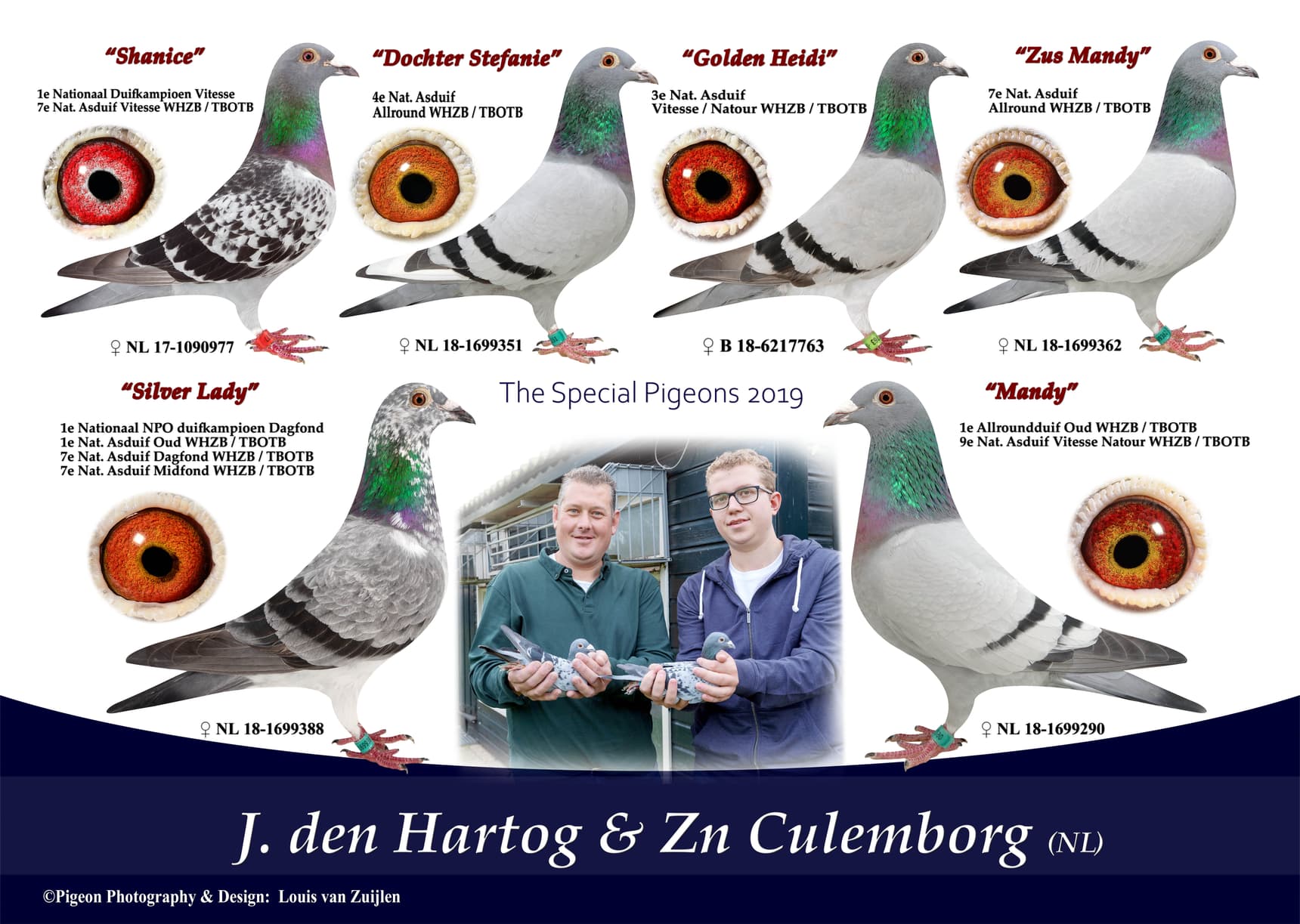 In recent years they bred several National Ace pigeons at the homes of Johan & Thomas Den Hartog in Culemburg, Netherlands, all of which were subsequently placed in the breeding loft, with the exception of “Silver Lady”. A luxury and opulence, that's what you might call it. Now, barely 5 years later, new young top pigeons have emerged and are doing well again and most of these better pigeons come from the National Ace Pigeons or relatives thereof. Good x good you have a better chance of success. We now present several young toppers from several parts together with their parents who have performed very well in the last 2 seasons.