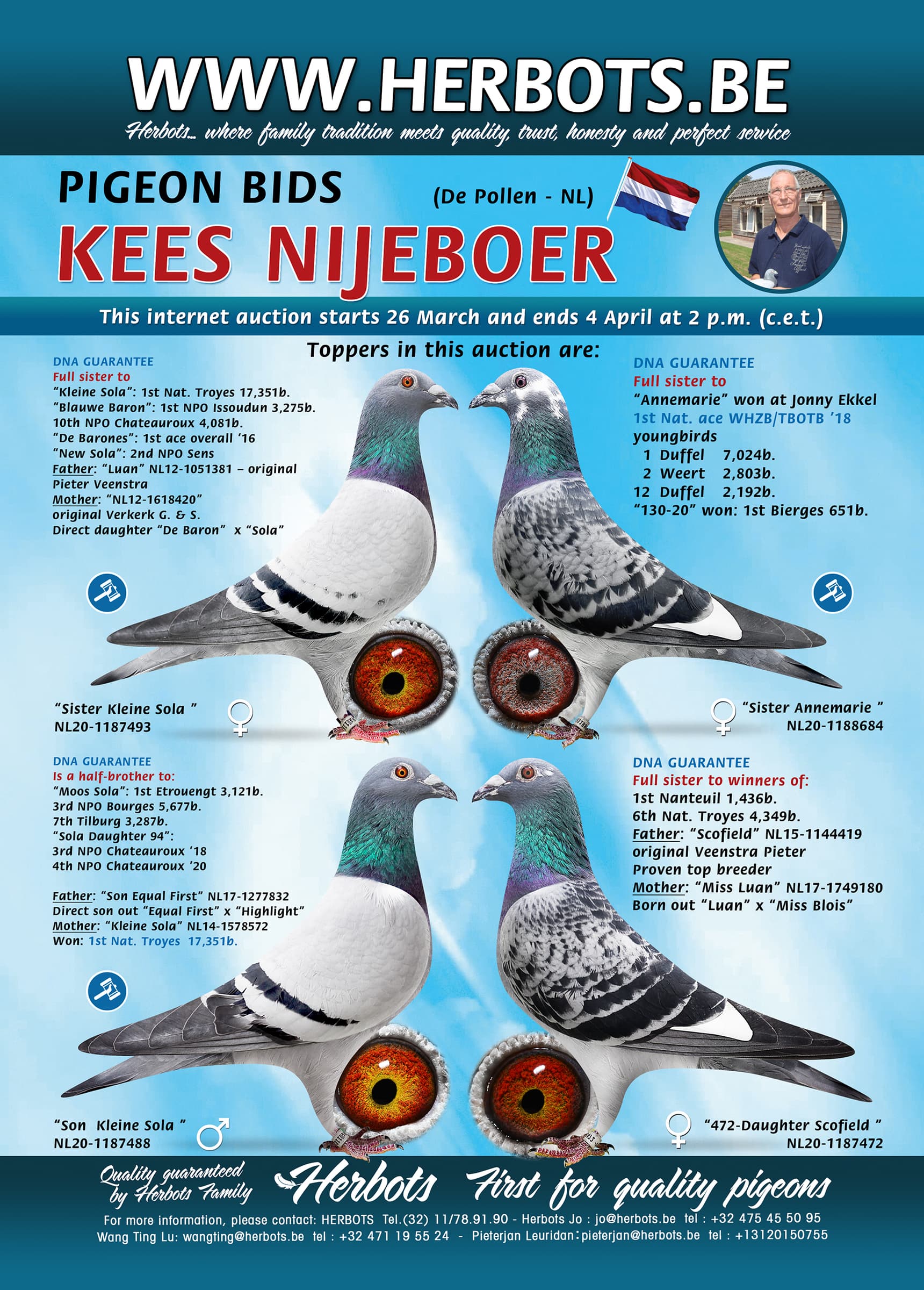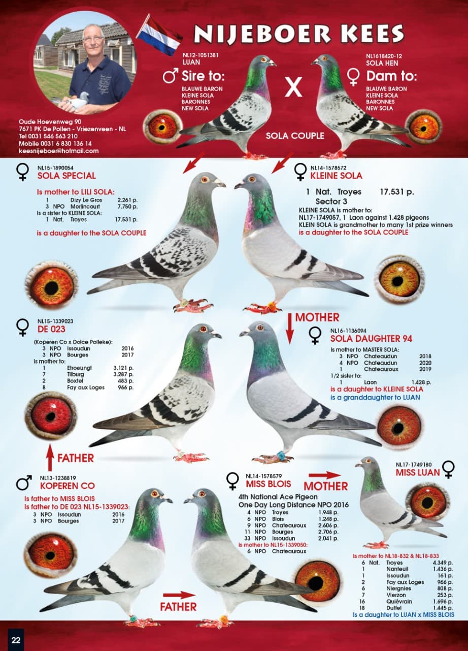 At the moment Kees is selling 5 strictly selected youngsters out of his proven breeders. Take your chance now because these pigeons will probably not be sold anymore.
