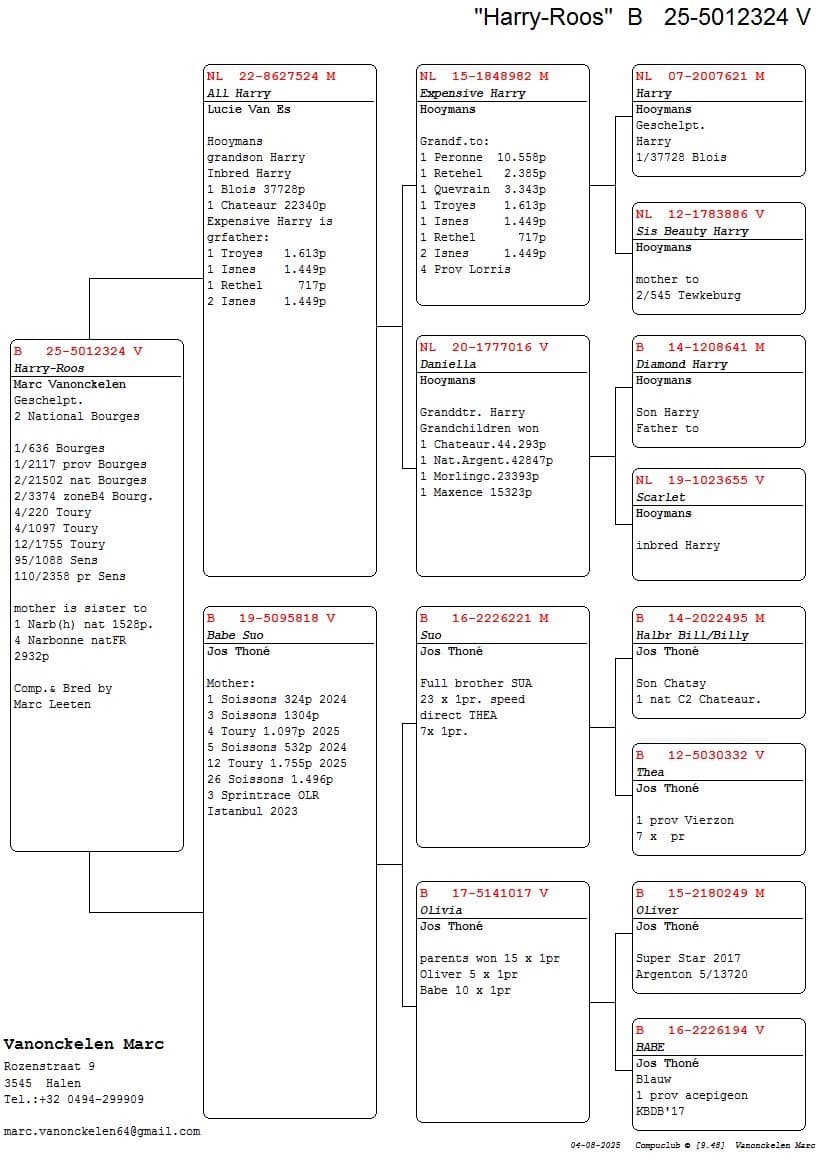 Son of “NL 982/15” Expensive Harry is son of Harry Jan Hooymans x “NL 016/20” Daniella is inbred Harry Jan Hooymans