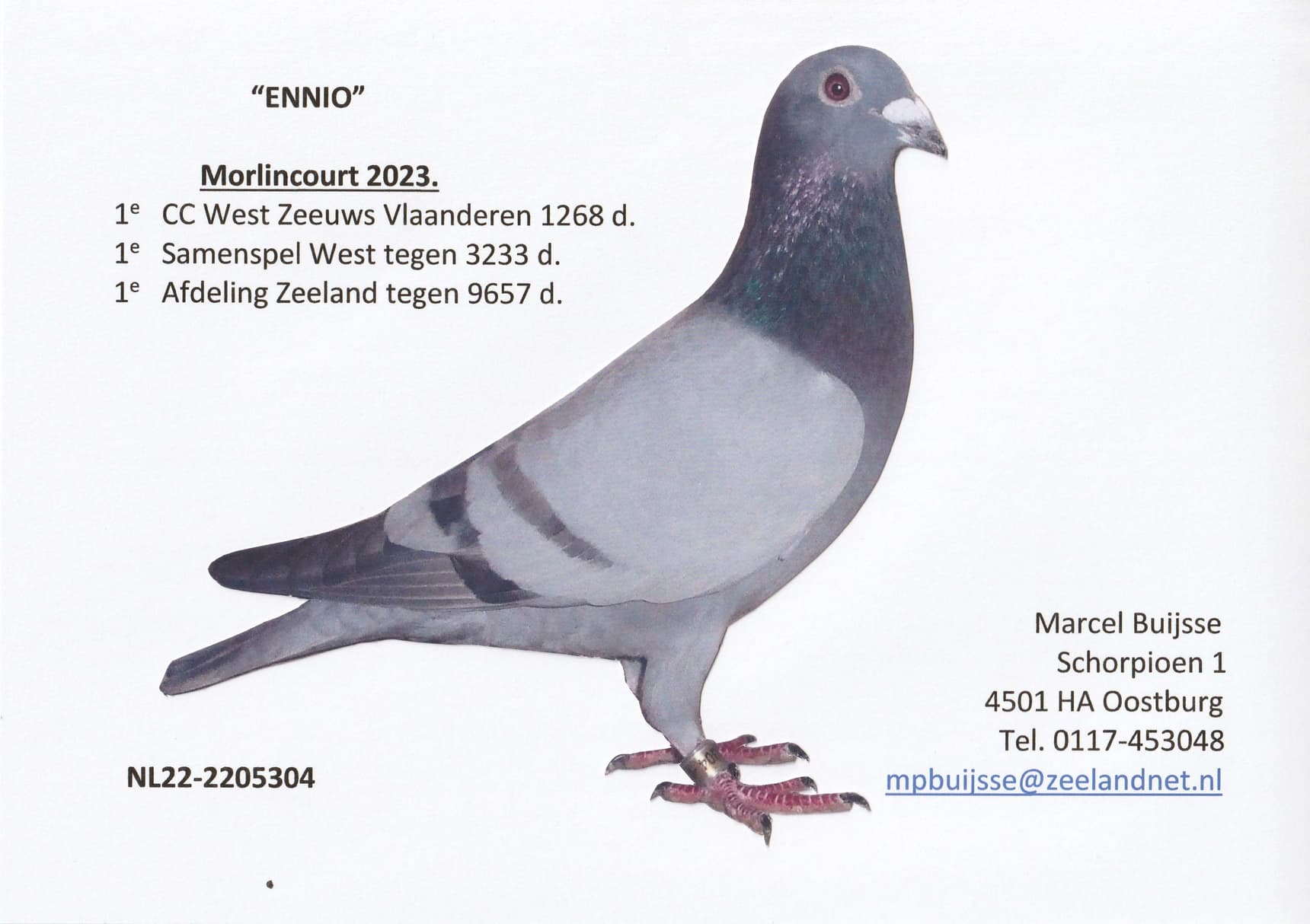 The winning pigeon is the NL22-2205304 'Ennio' a blue/isabel cock.