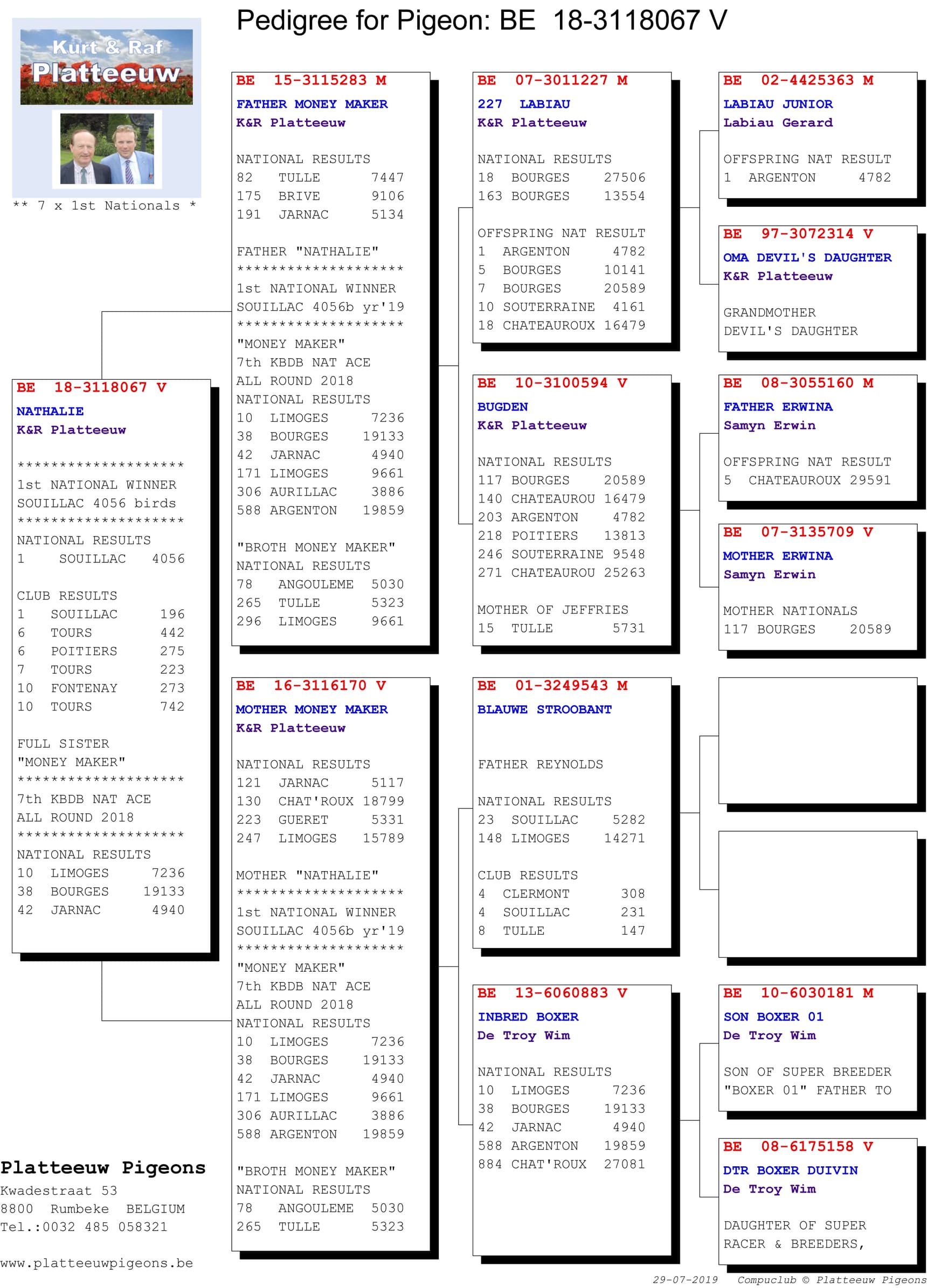 PLATTEEUW RAF & KURT - RUMBEKE 1st NATIONAL SOUILLAC 4,056 YEARBIRDS