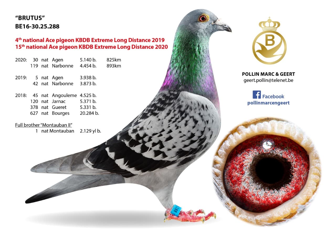 Performing at a high level, it is simply baked into the DNA of the Pollin pigeons. Yet another proof is provided by "Brutus", a full brother of "Montauban II" became 1st Olympiad pigeon Marathon 2022 and also shone with glorious titles such as 4th National ace pigeon KBDB marathon '19 - 15th National ace pigeon KBDB marathon '20
