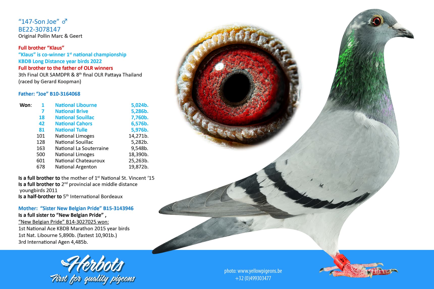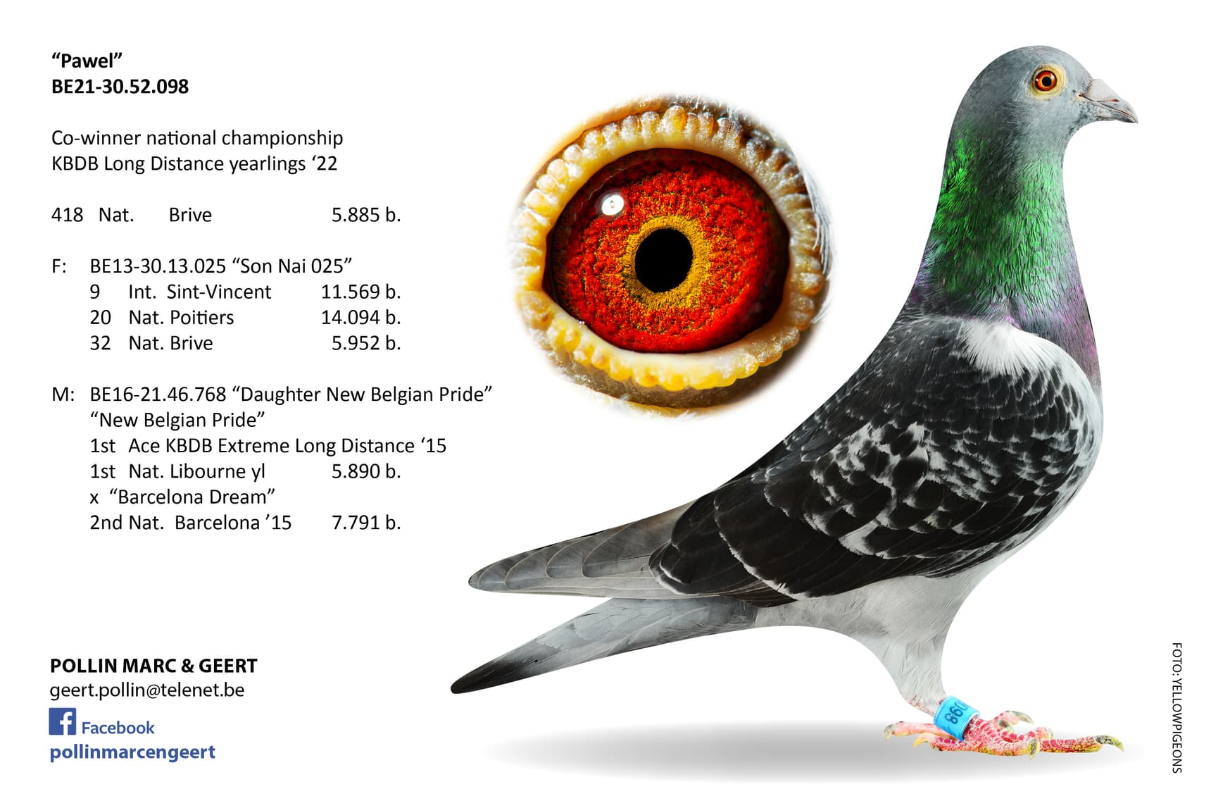 pollin marc and geert (snellegem) 1st national champion kbdb long-distance yearling 2022 2nd national champion kbdb middle distance old 2022