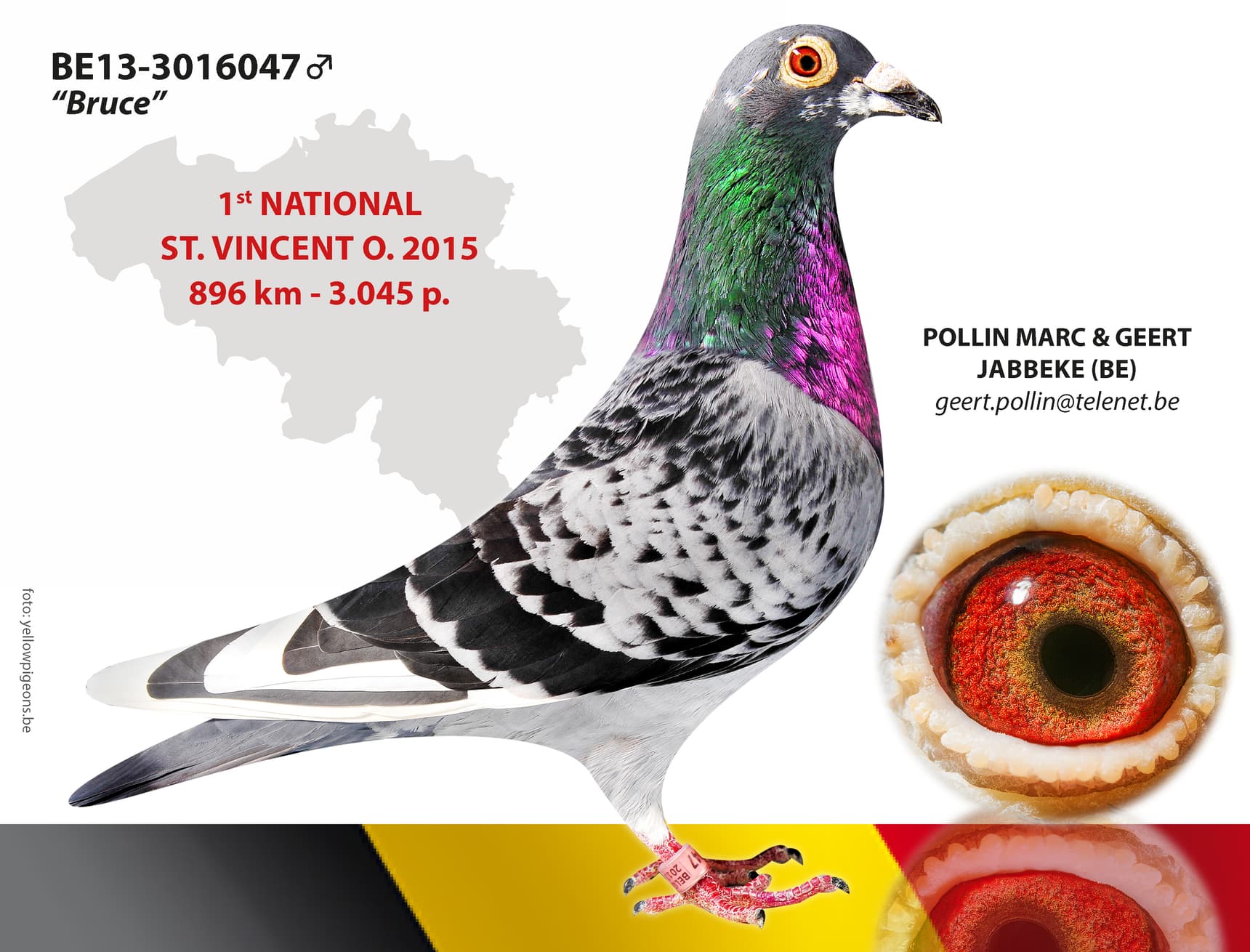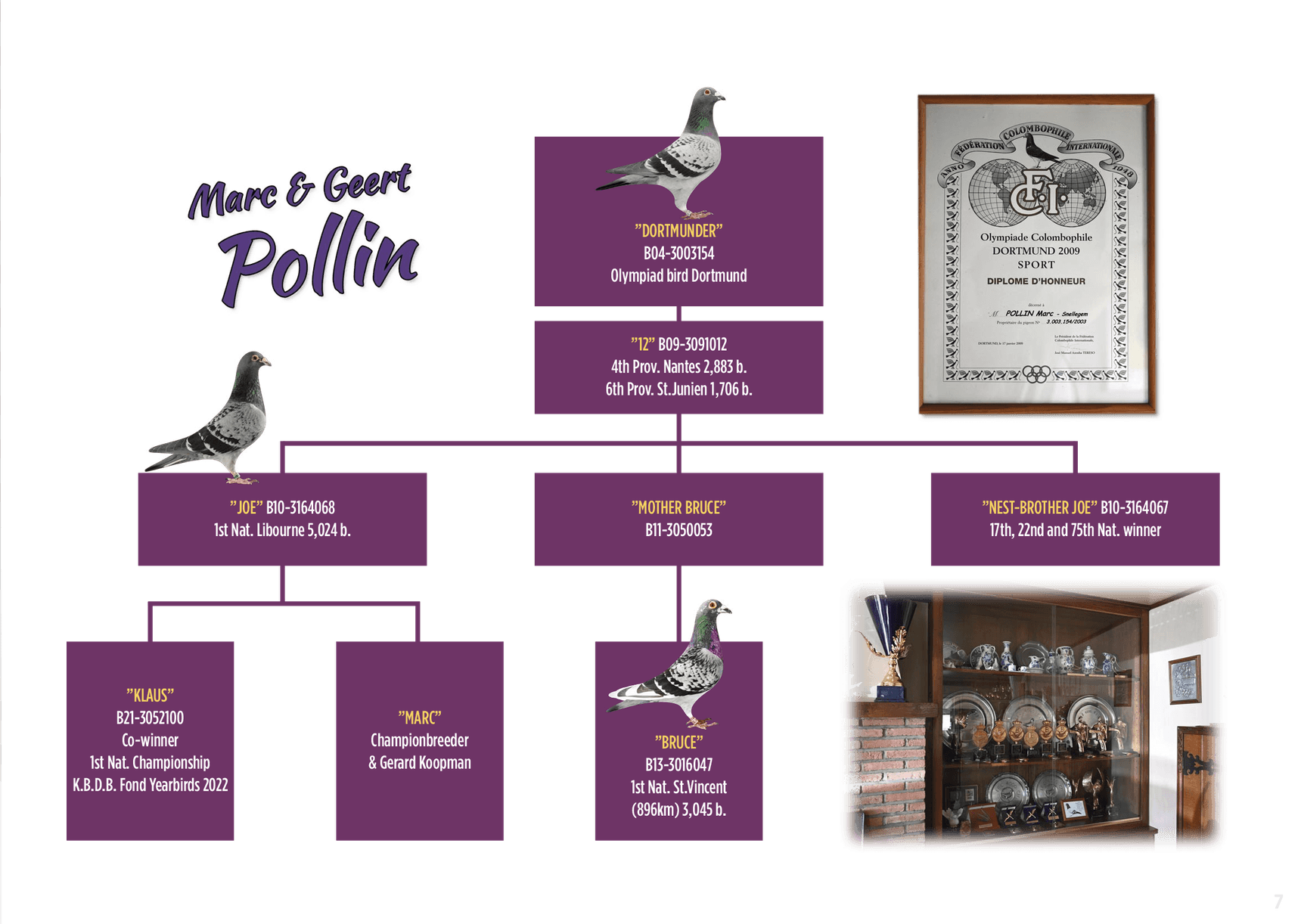 "Bruce" is the grandfather of Koopman, winner of a 9th prize in the final race of the OLR Pattaya, and of "Coby": 1st Dries-Bruck 17,461 p. – 1st Sourdun 5,475 p. (fastest of 12,000 p.) – 1st Sens 1,290 p.