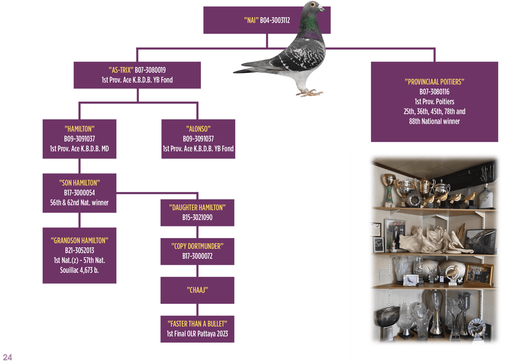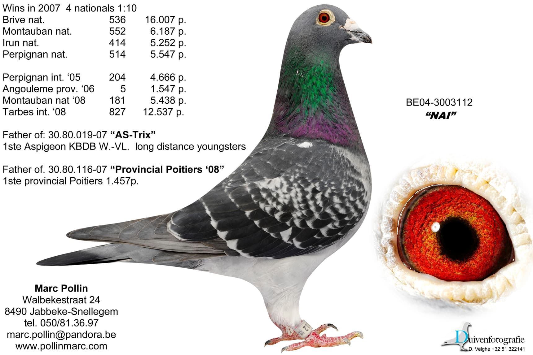 "Nai" became the sire of well-known Pollin top pigeons such as: