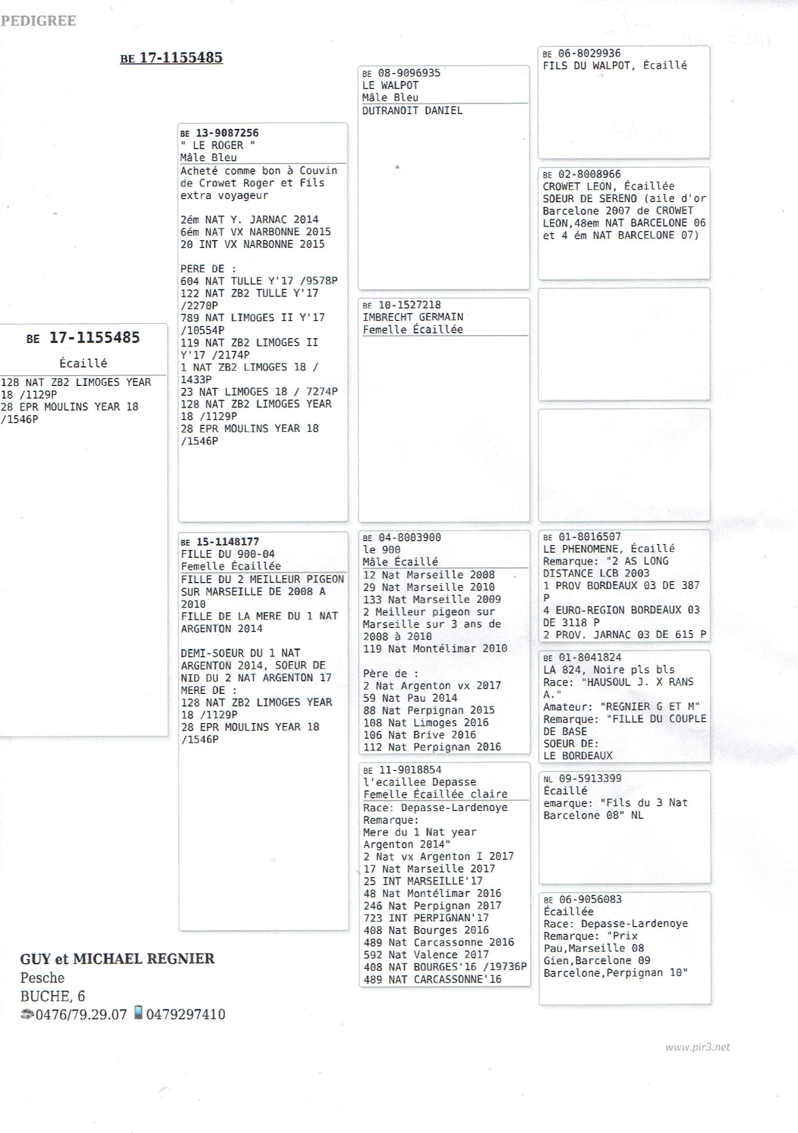 And before we forget…the base of the Regnier colony is based on pigeons from Depasse-Lardenoye (Wagnelée), Jean Hausoul-Janssen (Epen), Germain Imbrecht (Bornival), Daniel Dutranoit (Boussu en Fagne) – Crowet Roger (Bois-D’Haine), Willy Antoine (Pétigny) and Leon Crowet (Couvin).