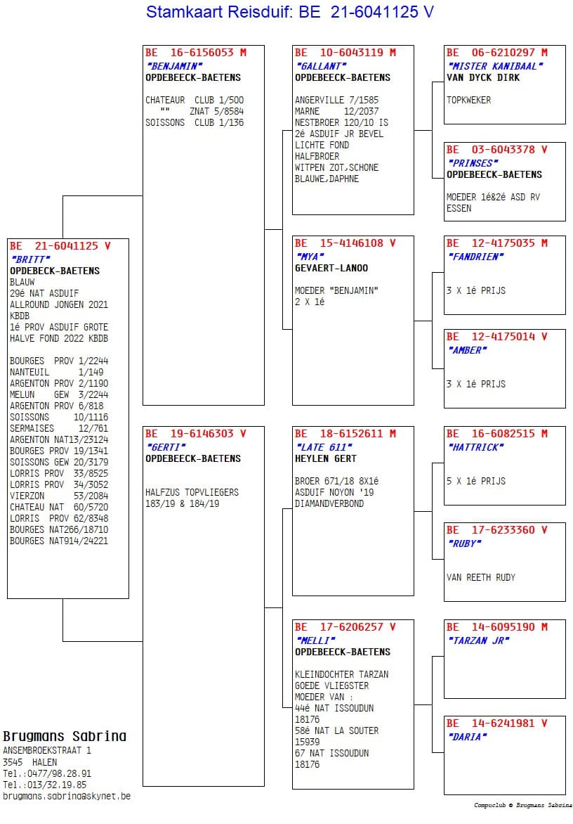Full sister from “Wout” 9th Nat Ace All Round young birds KBDB 2021