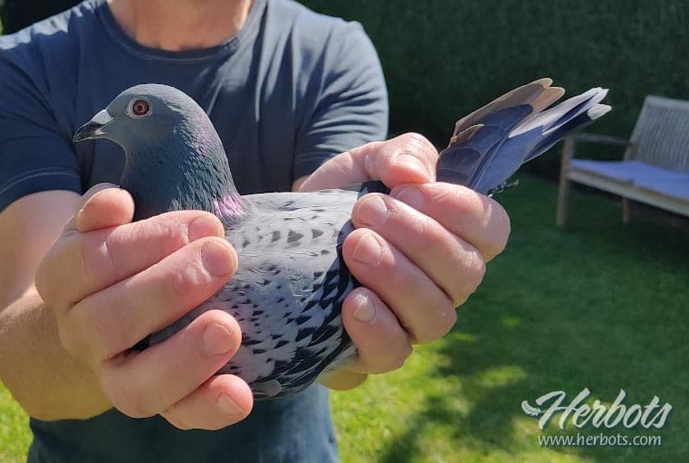 Both groups train once a day, the hens normally always in the morning and the widowers in the evening. Only on very hot days do we switch to the rhythm of having all pigeons trained in the morning.When basketing, their system is even easier, all pigeons are picked up in the aviaries and go into the basket without motivation at that moment. Perhaps this extra stimulation ensures that they spend little time in the breeding loft and therefore want to fly home faster. When they come home they can always stay together for 3 to 4 hours.Most of the pigeons here are all provided for the heavy middle distance and long distance races, if they do fly a shorter race in between, this will be Noyon.