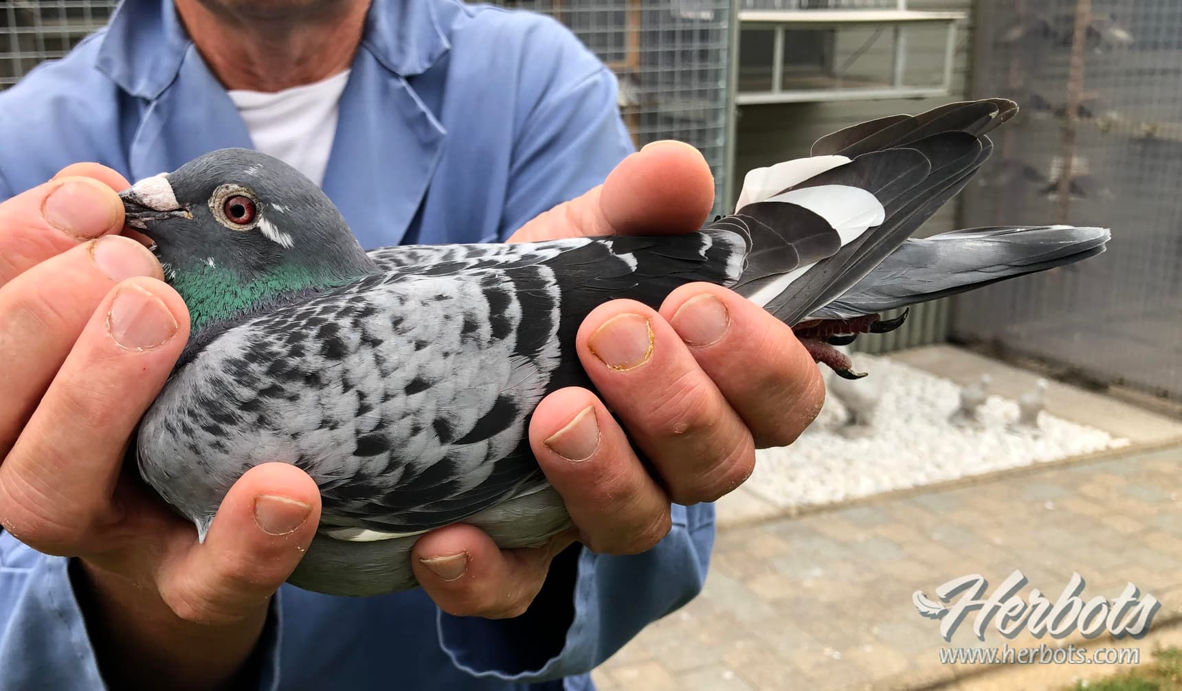 Only the loft of total widowhood was allowed to have youngsters in the spring, while the other pigeons did not do winter breeding, but were simply allowed to brood over. They were coupled +- at the end of February.The new thing about their system is that the widowers live in an aviary behind the racing lofts, where they can sit in peace and quiet out of the wind, sun and noise. They just sit here on chapels and pass by their racing loft twice a day.