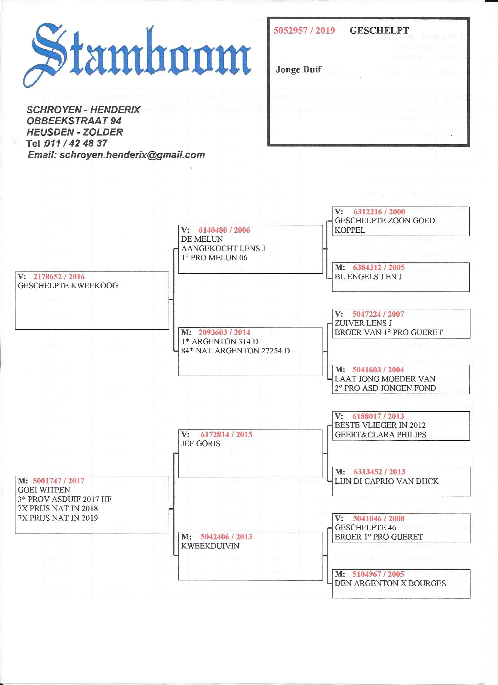 Son to “017/13” Top racer G & C Philips x “452/13” strain Di Caprio Dirk Van Dijck