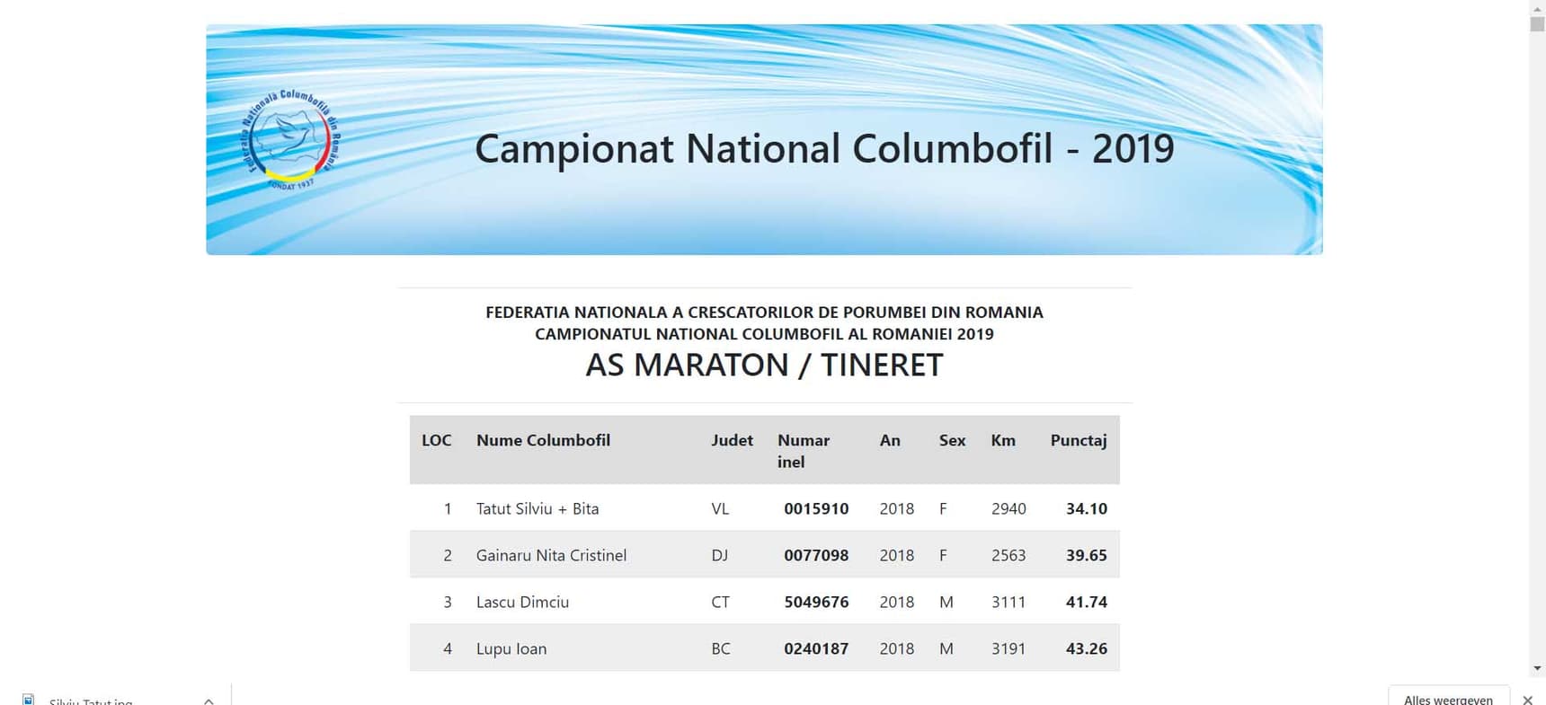 silviu tatut : 1 national marathon ace bird yearling (3 races) romania 2019
