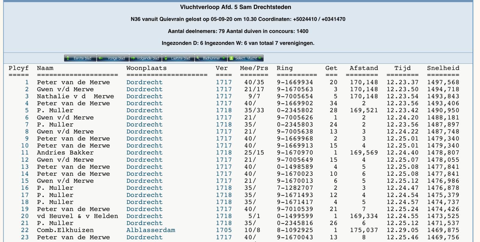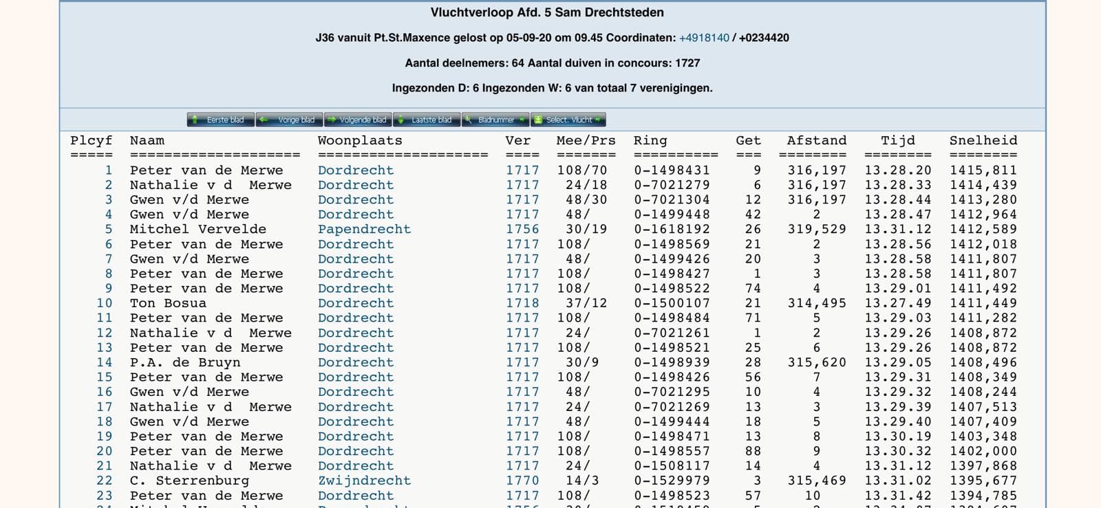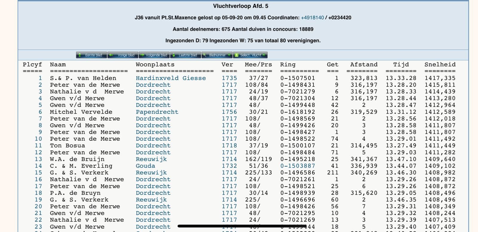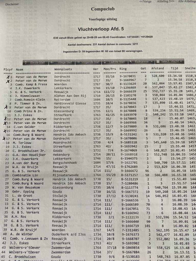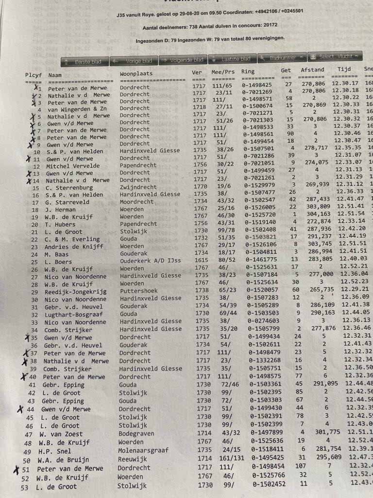 Blois – 528km – 3,211 old and yearbirds: 1st – 1st – 9th – 12th – 13th -15th -17th enz…