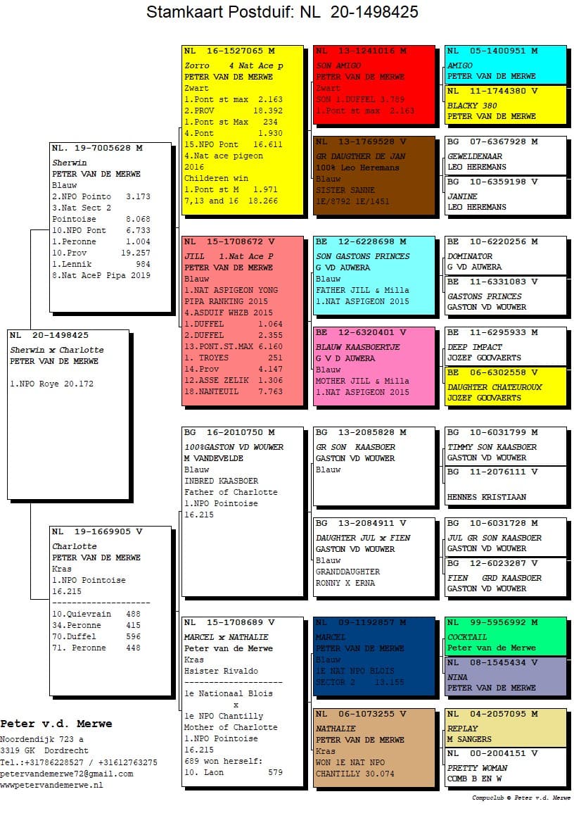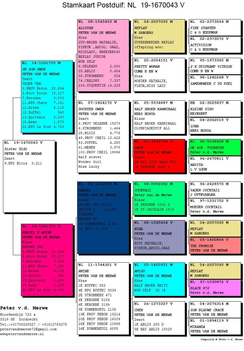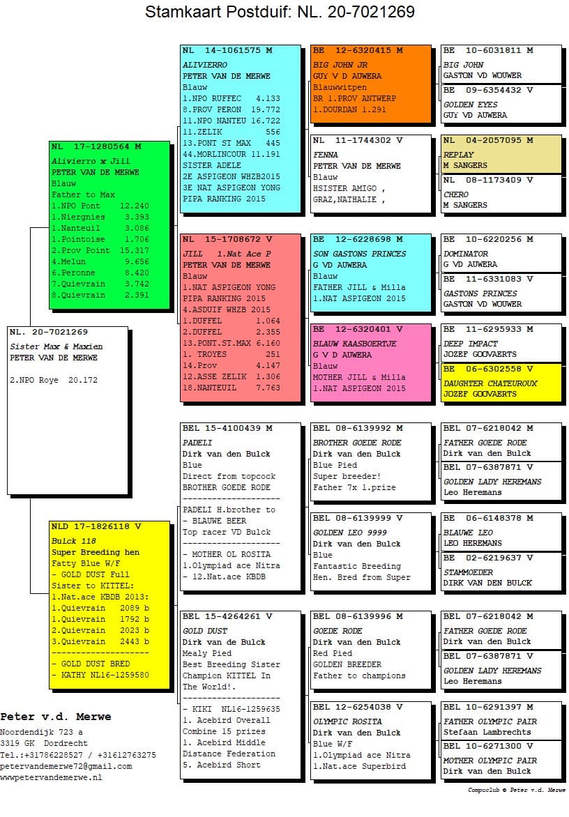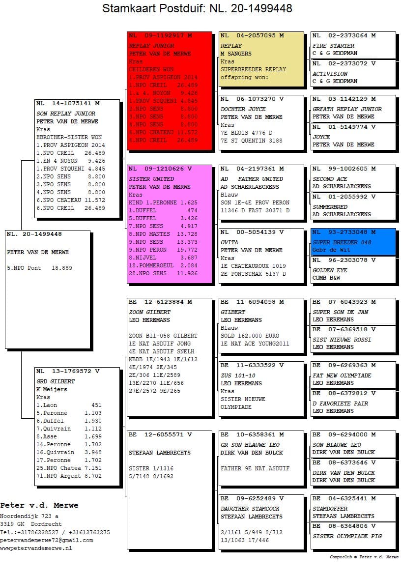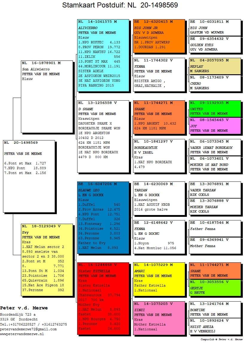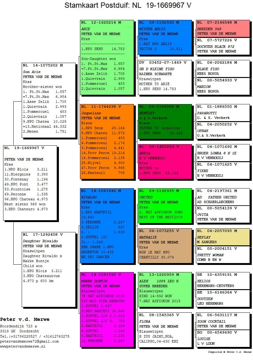 The pedigrees of the winning birds