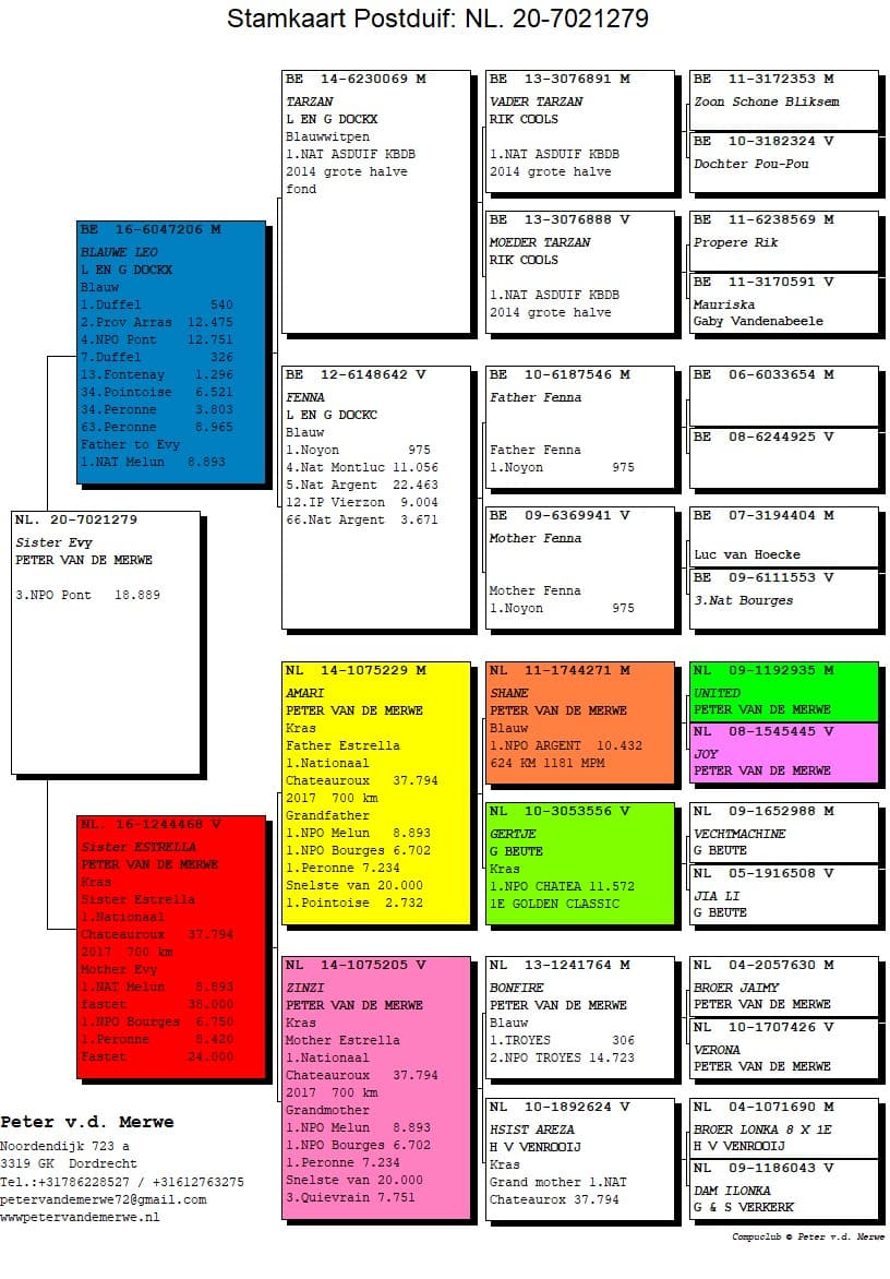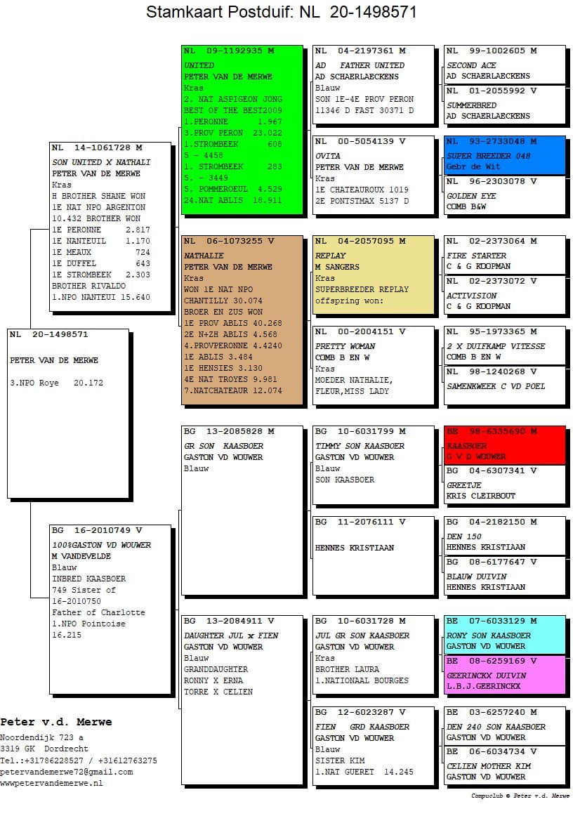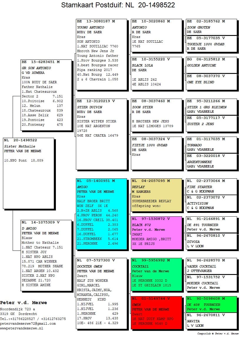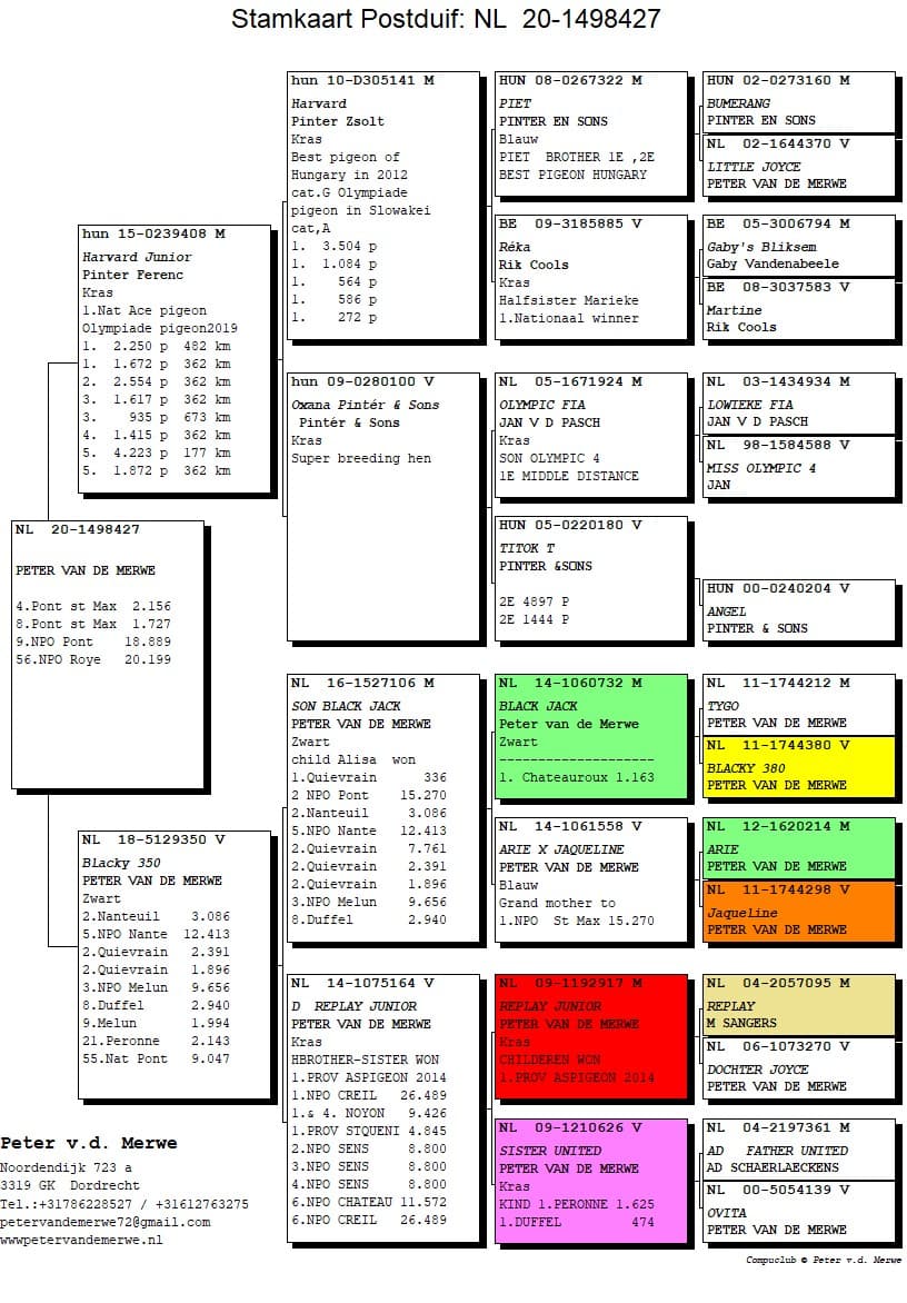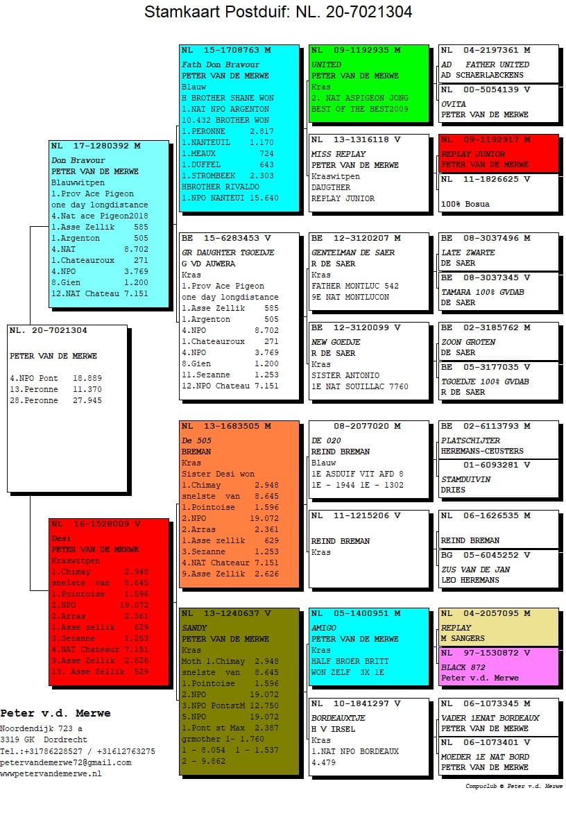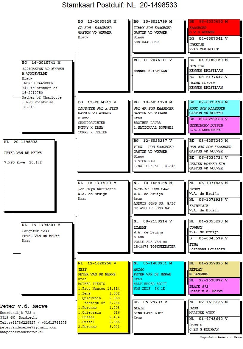 The pedigrees of the winning birds