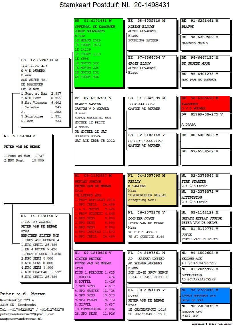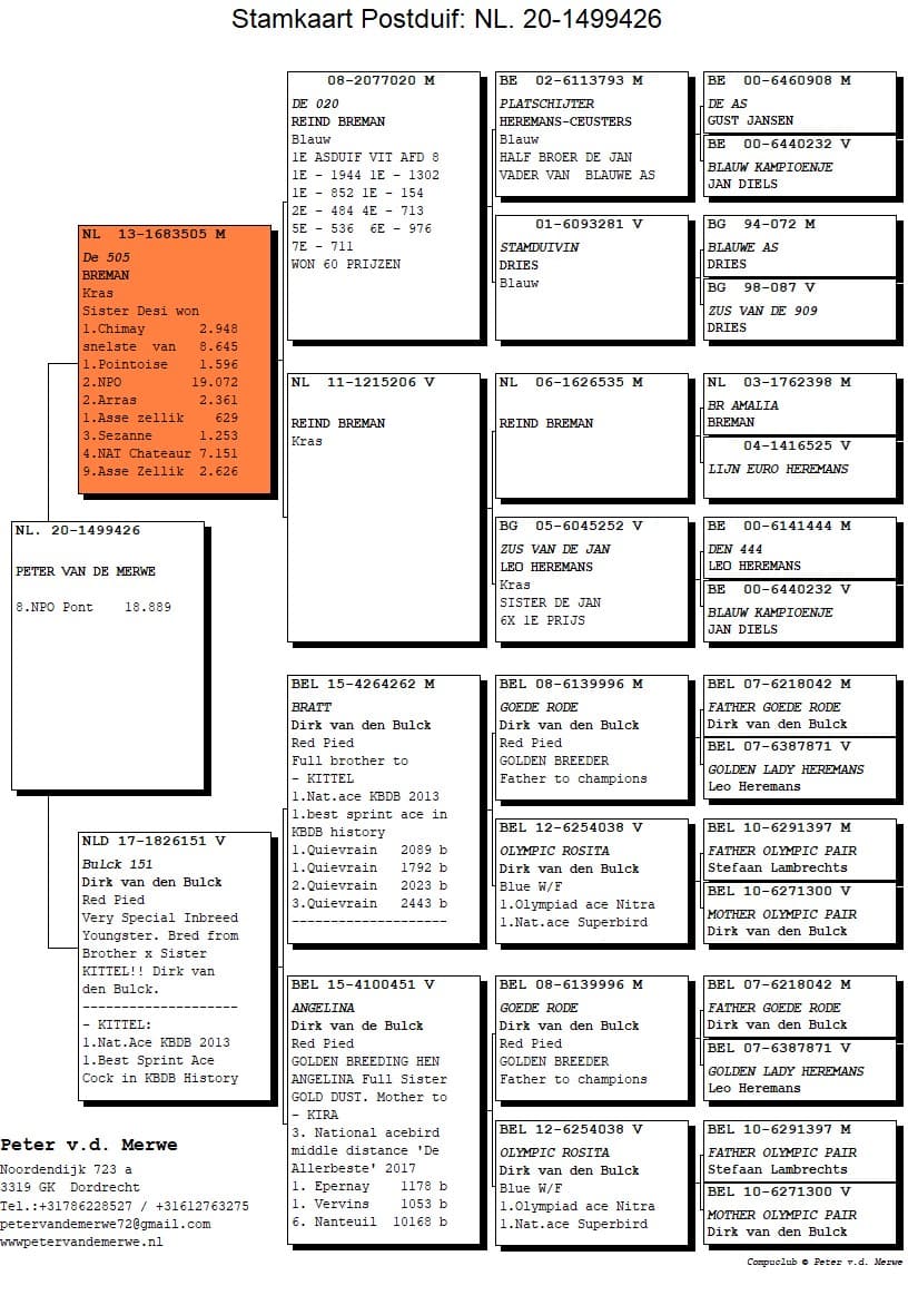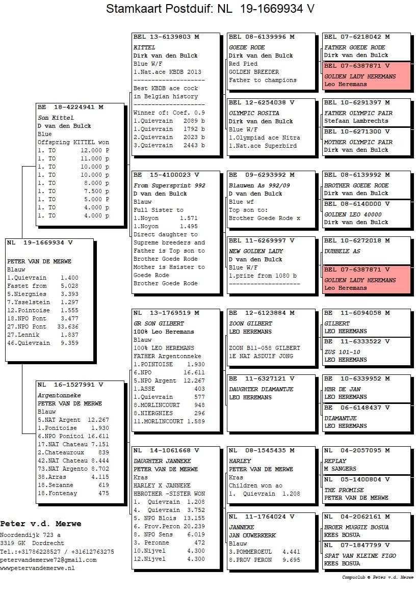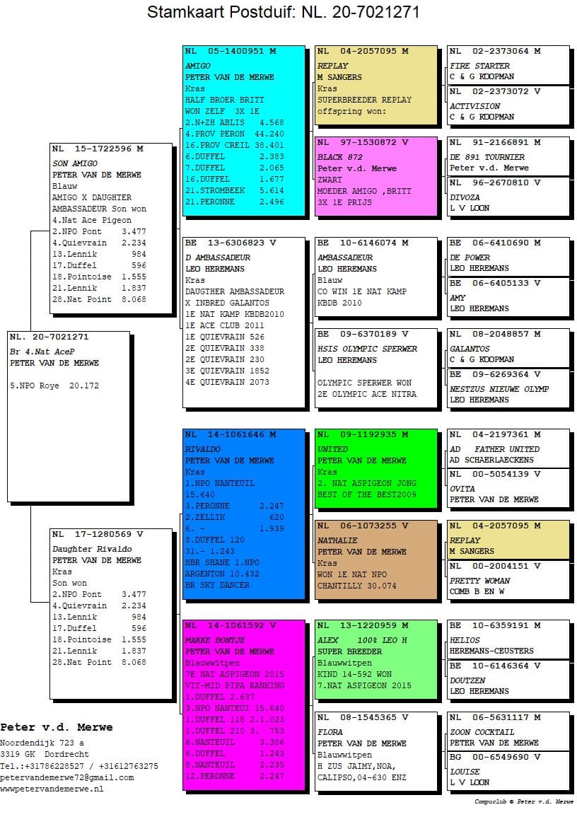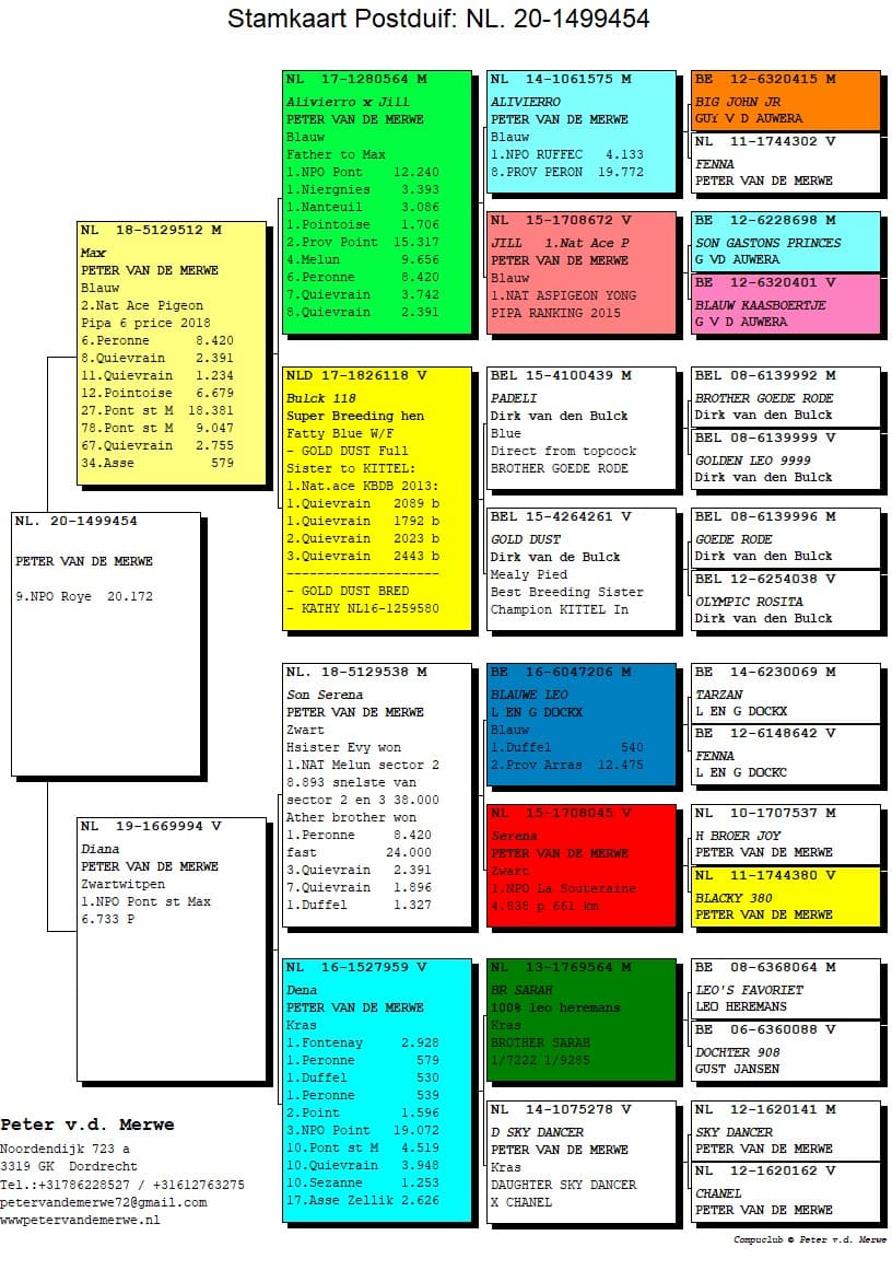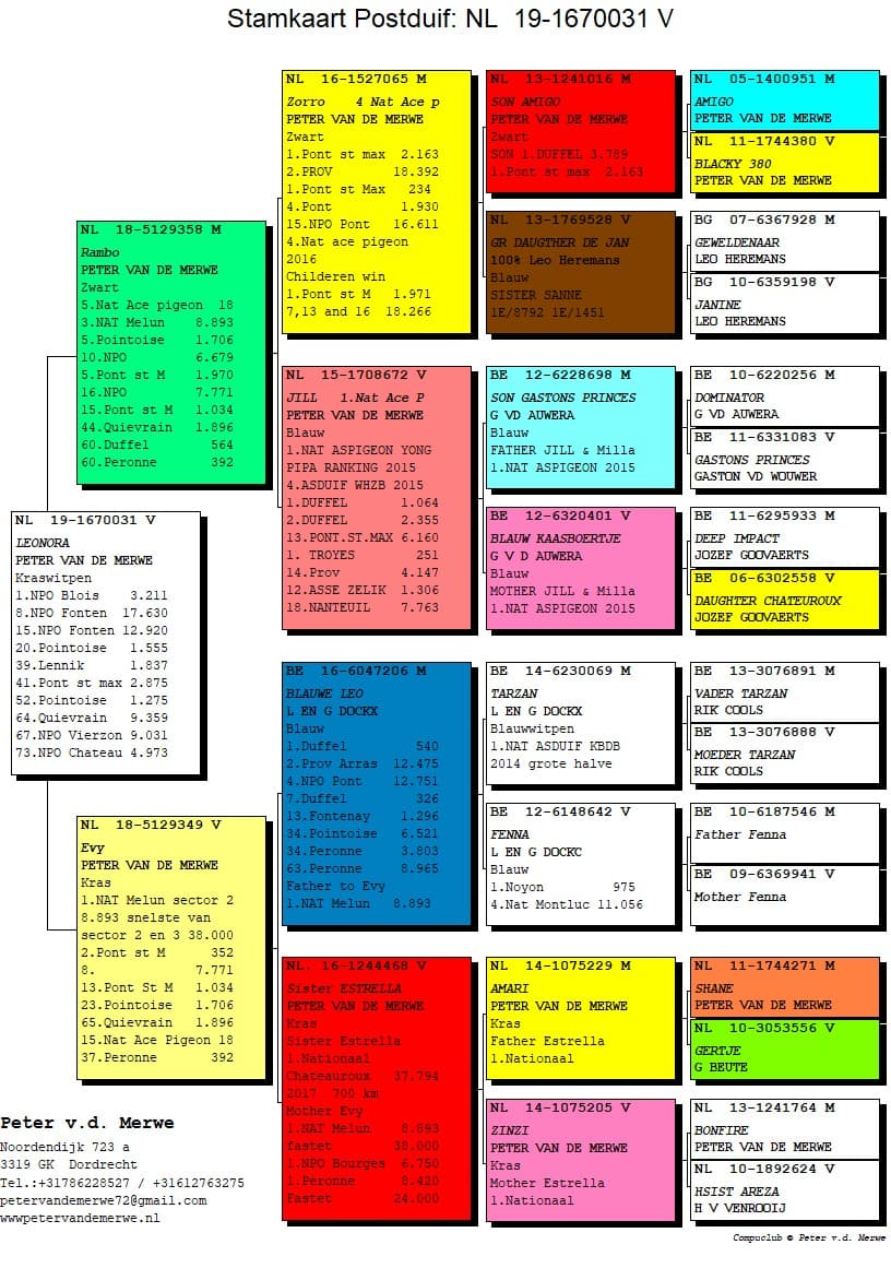 The pedigrees of the winning birds