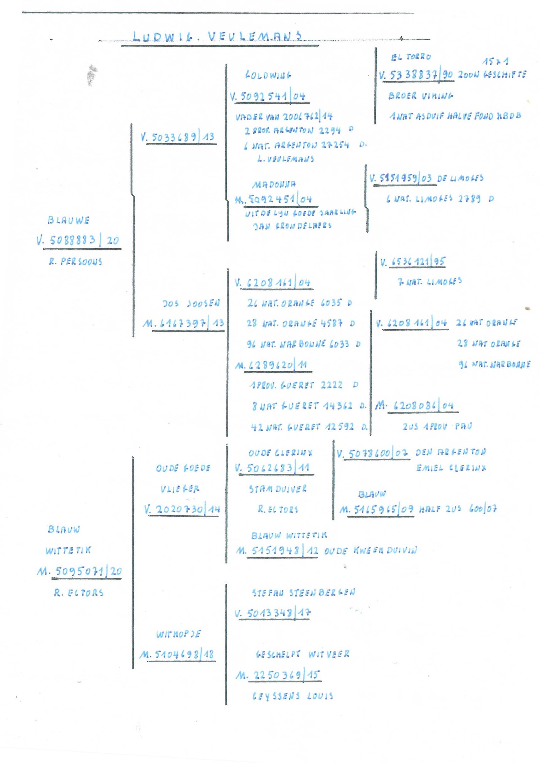 Daughter of “730/14” Oude vlieger is grandson Argenton Clerinx x “698/18” Witkopje is strain Stefan Steenbergen x Ceyssens Louis