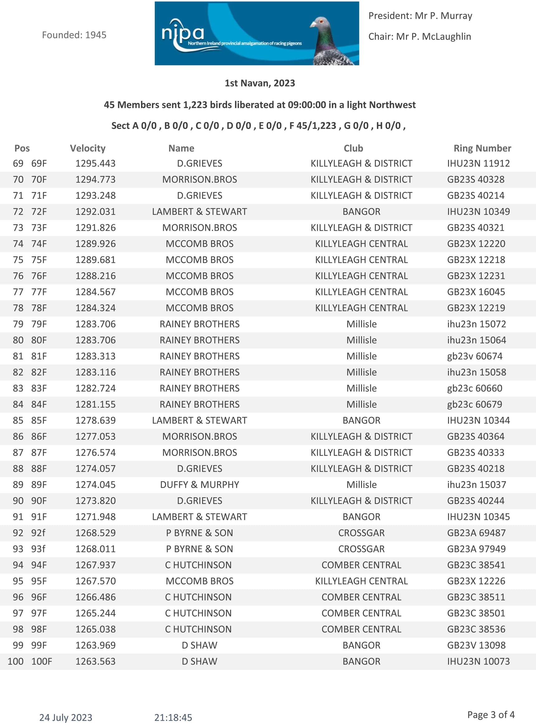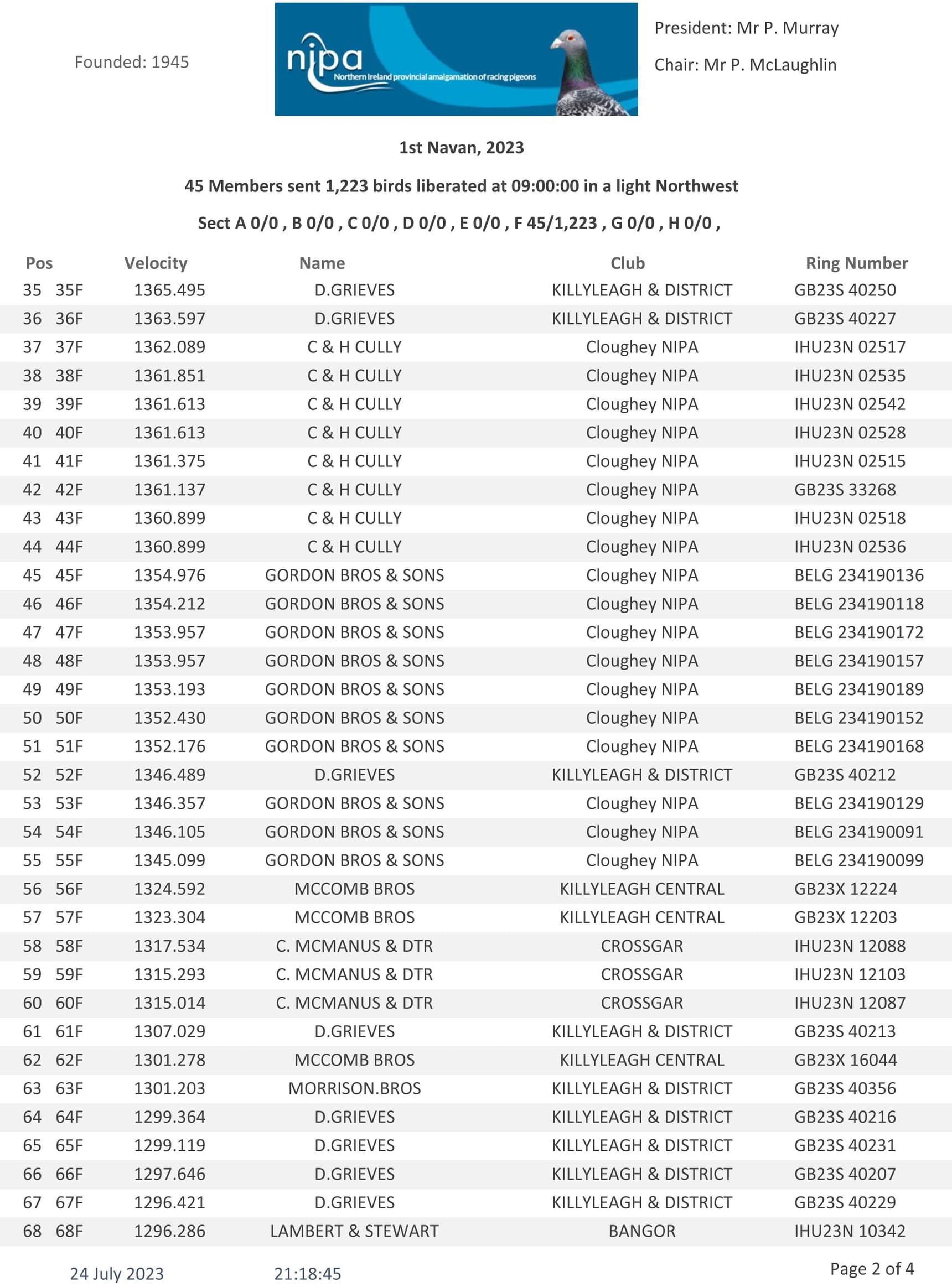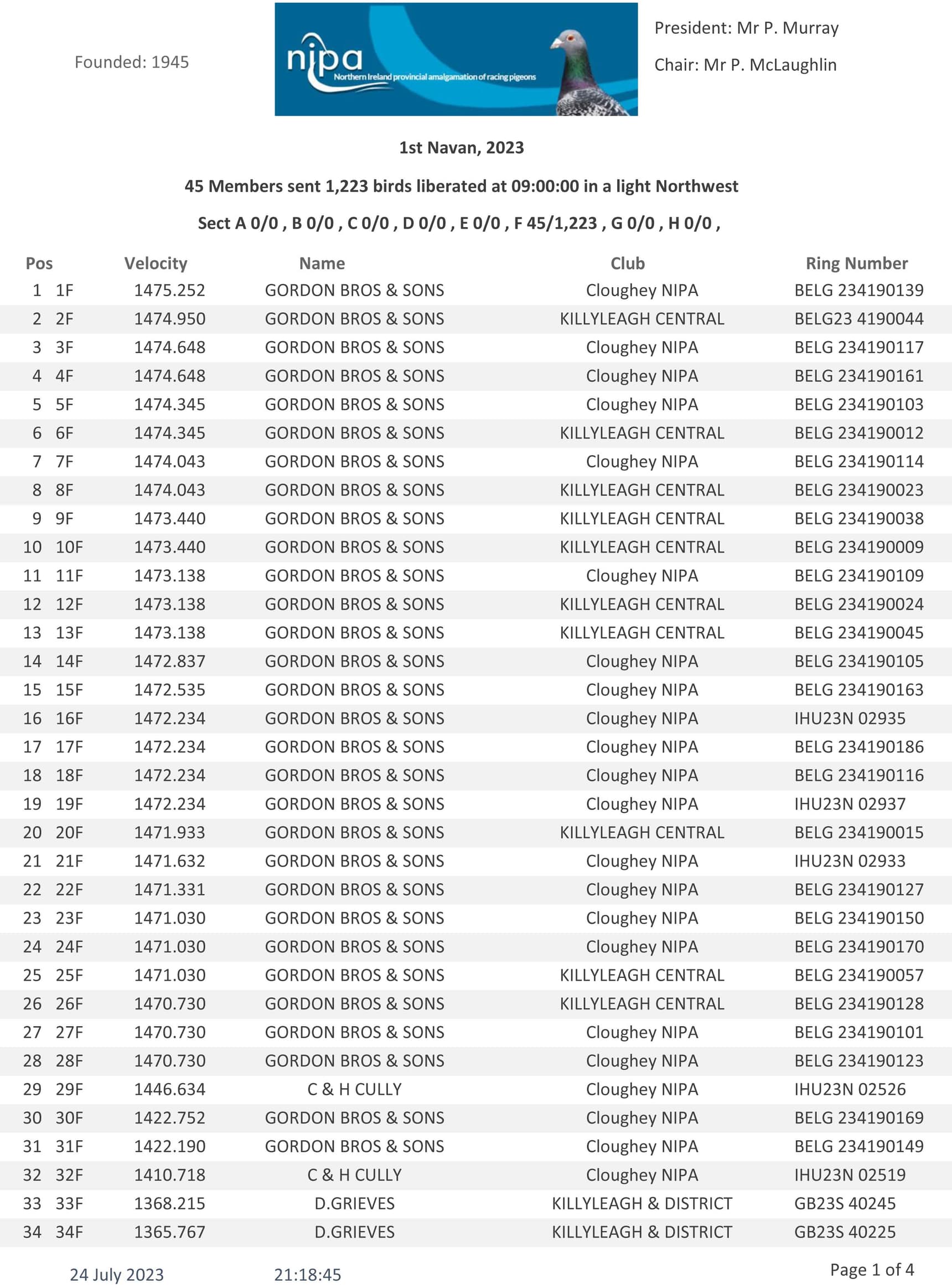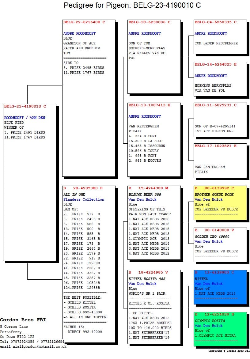 Gary and Niall Gordon have the "key to success" thanks to the original birds of Flanders Collection. Top performances on a very high level but on 1st Navan Open (NIPA) race the won 1 till 28 against 1,223birds. A never seen performance, a performance who confirms the high quality of the Flanders Collection birds.