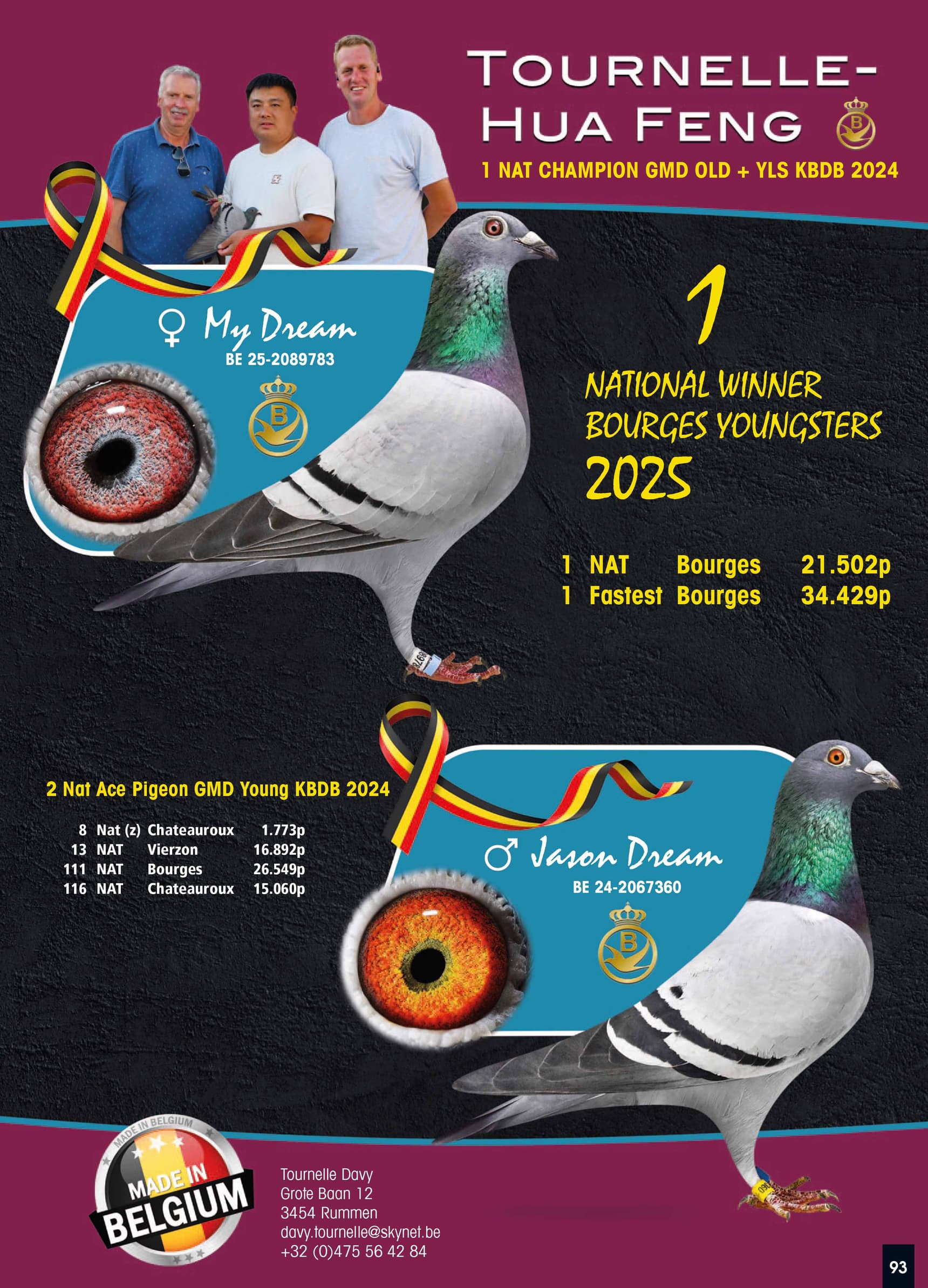 Looking at the 2025 season of the super colony Tournelle – Hua Feng from Rummen in Flemish Brabant, they can rightly say, congratulations! This colony not only won 1st National Bourges against 21,502 young pigeons and had the fastest pigeon of the entire release, but also performed in almost every race. They won one 1st National and three 2nd National prizes. The rest of the top 100 rankings are a very long list, which you can admire further on in this article, along with their best results.