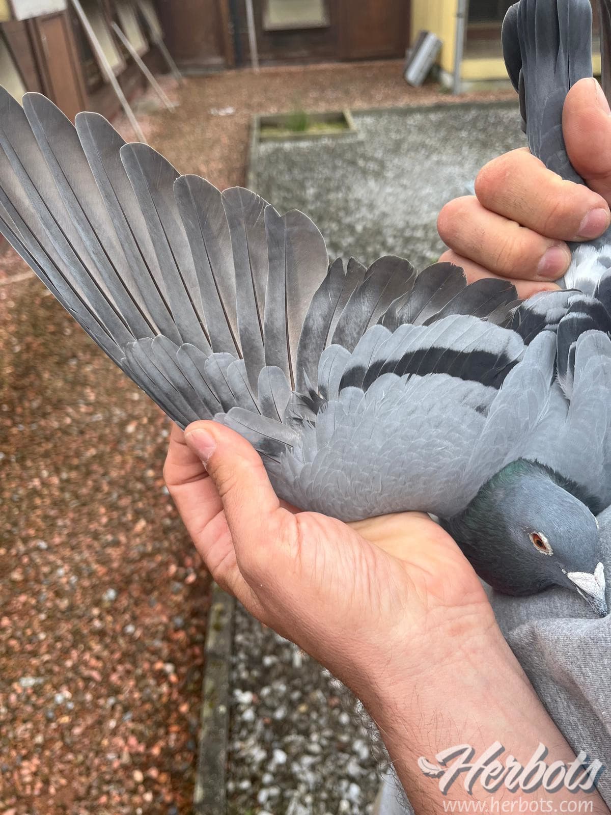 Simons' basic pigeons are descendants of "Oud Doffertje 224" and his son "De 16", supplemented with descendants of the best pigeons from Freialdenhofen and sons. Simons' breeding stock consists of 18 breeding couples, from which 100 youngsters are bred every year.
