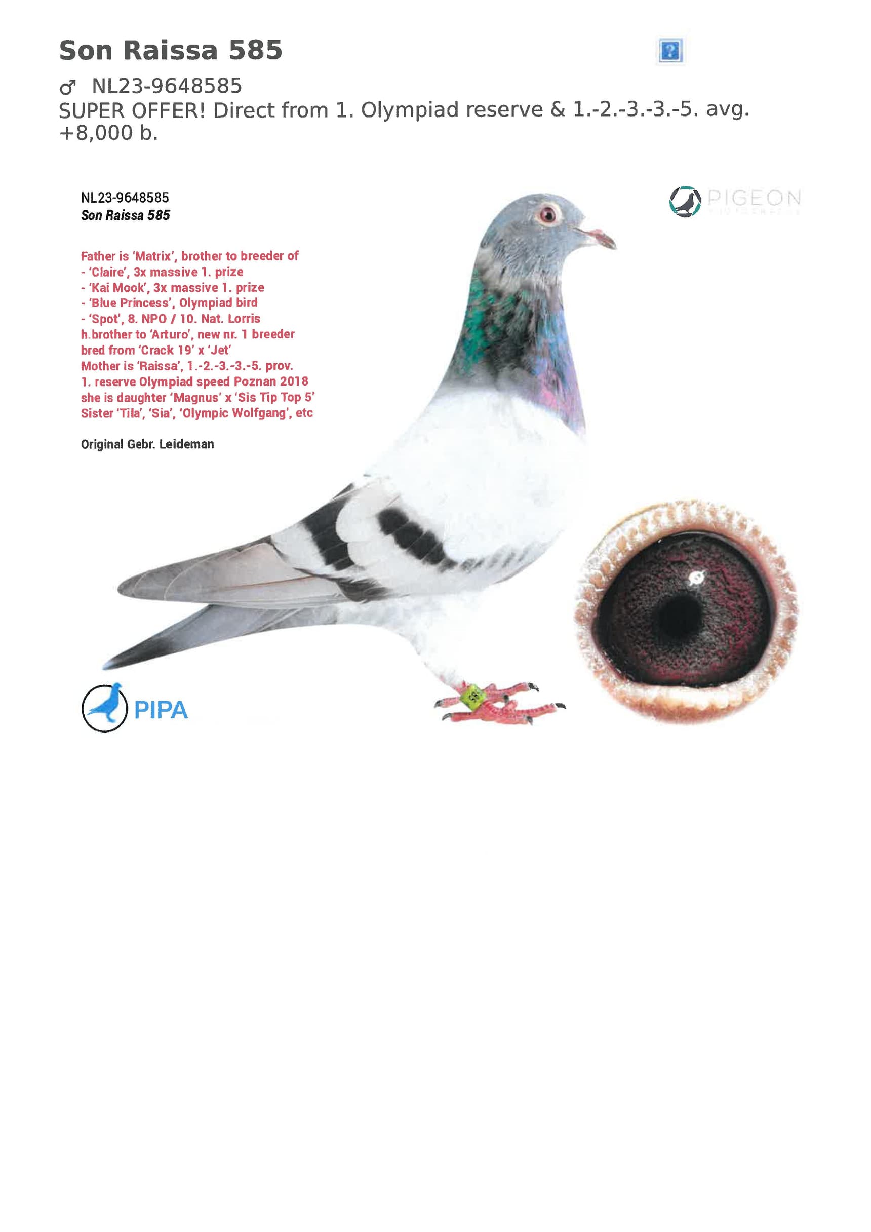 Seller: Official organisation "International Diamonds Pigeons Edition" 2026
