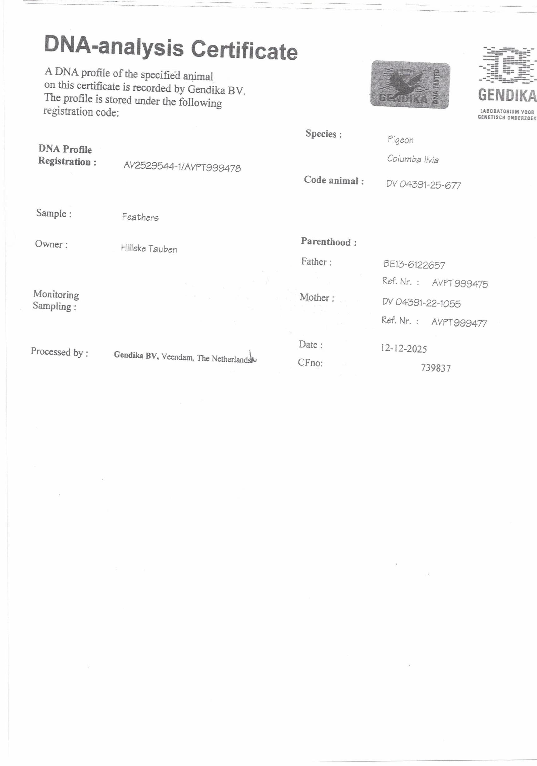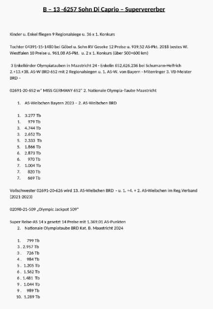 Born out champion bird “Di Caprio” x “Granddaughter