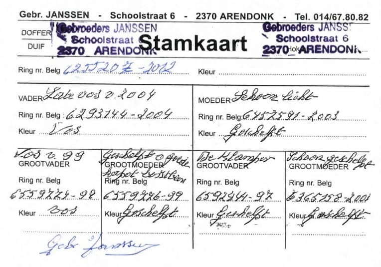 Breeder: 100% Gebr. Janssen - Arendonk 纯詹森兄弟