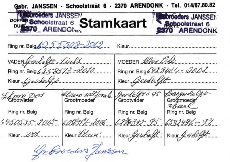 Breeder: 100% Gebr. Janssen - Arendonk 纯詹森兄弟