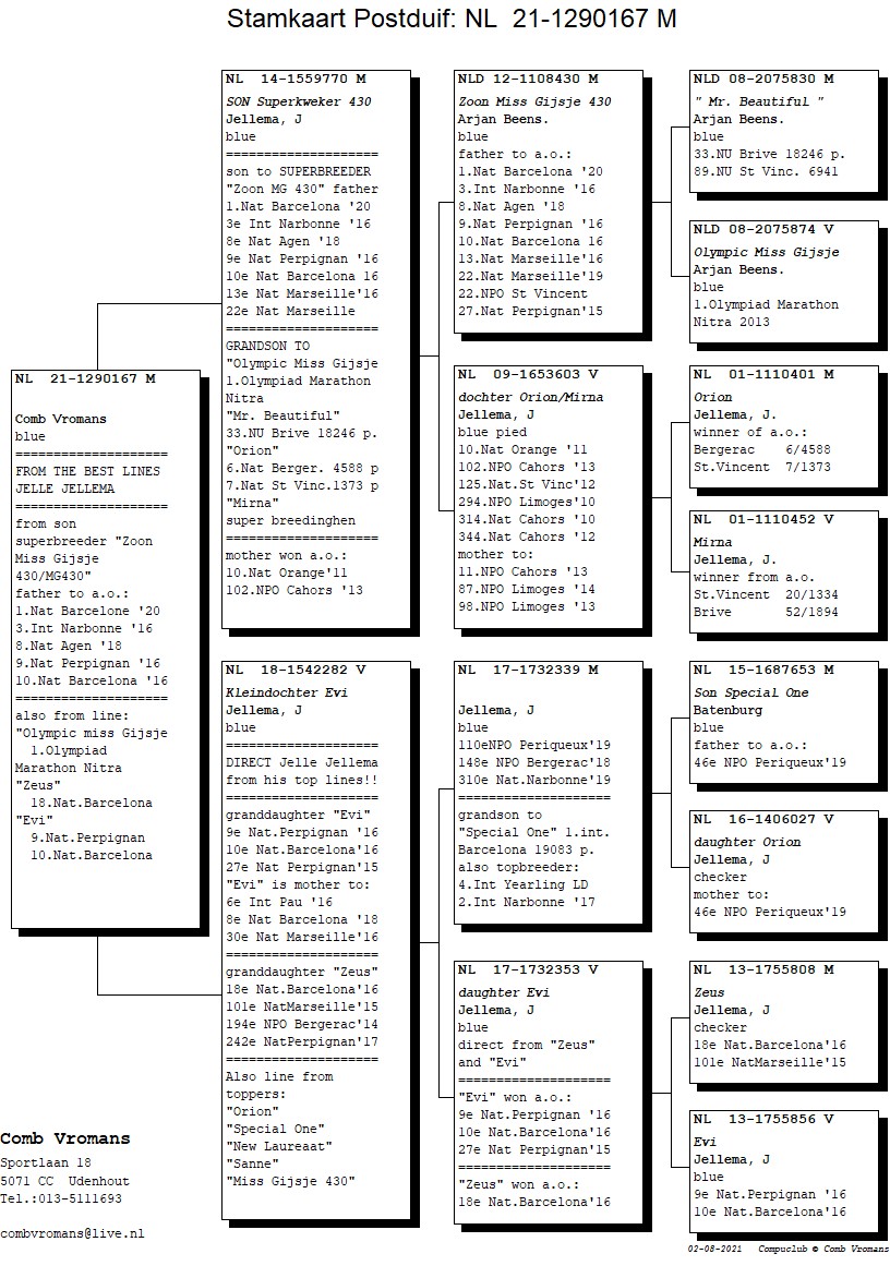 Direct son “Son Miss Gijsje 430” (Is father to winners of 1st Nat. Barcelona ’20 – 3rd Internat