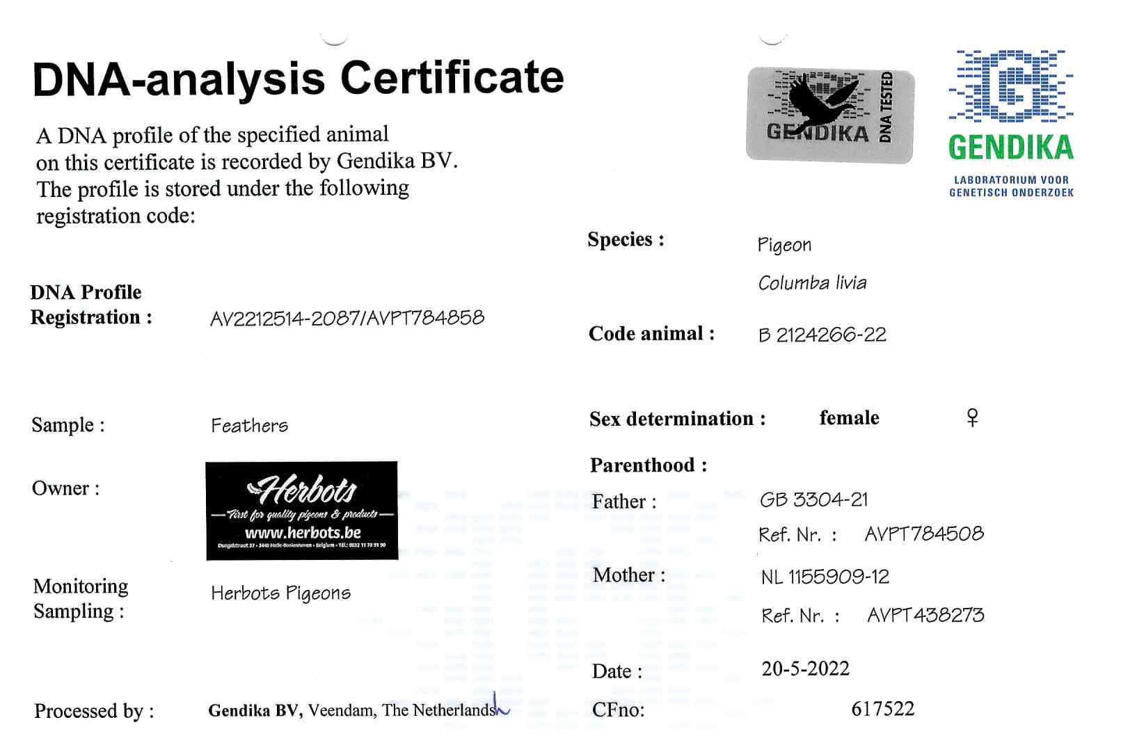 Direct son “Sun2724-13” (won 6 x 1st against + 20,000b. - 100% Leo Heremans) x “FUT239-20”