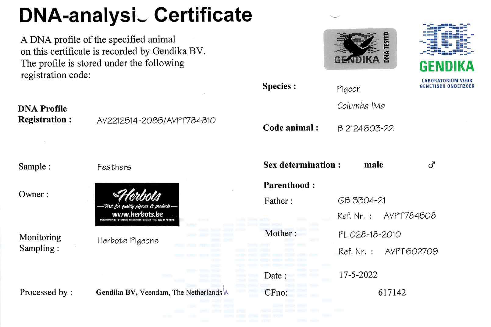 Direct son “Sun2724-13” (won 6 x 1st against + 20,000b. - 100% Leo Heremans) x “FUT239-20”
