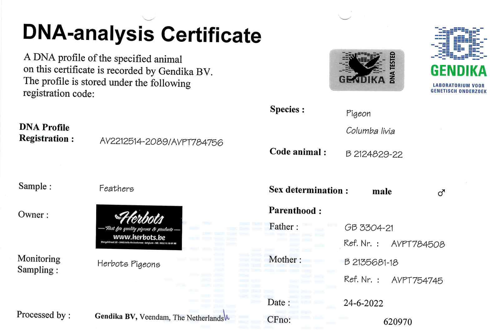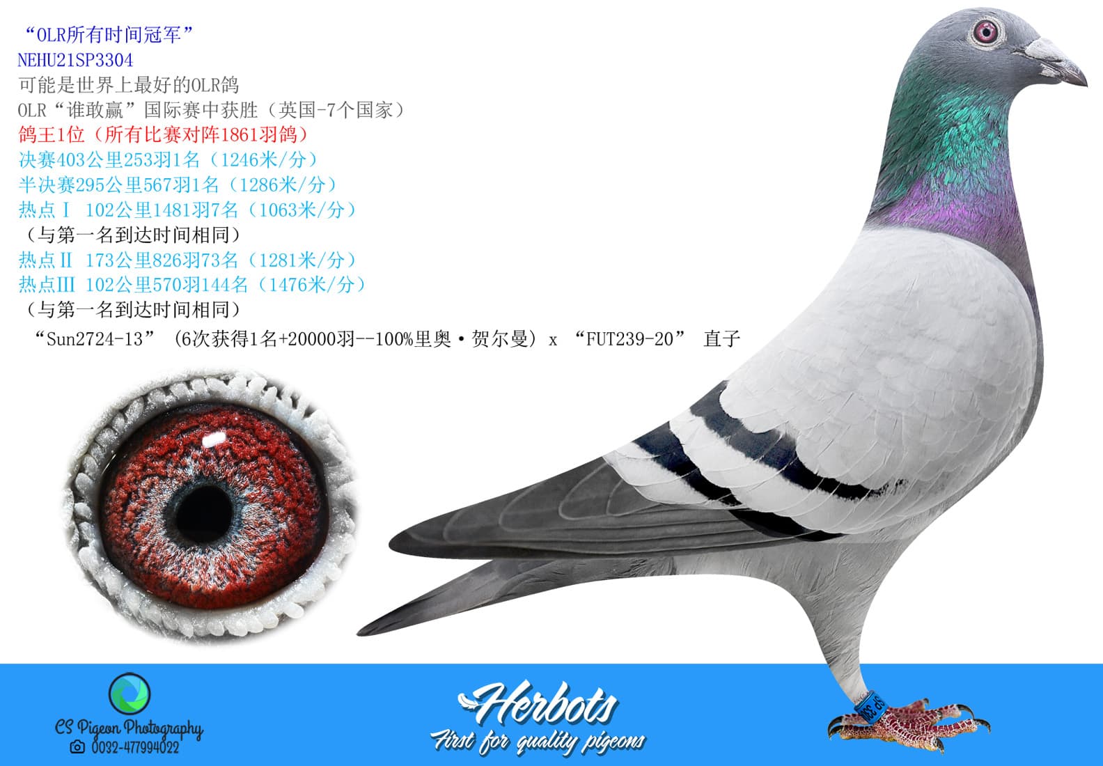 Direct son “Sun2724-13” (won 6 x 1st against + 20,000b. - 100% Leo Heremans) x “FUT239-20”