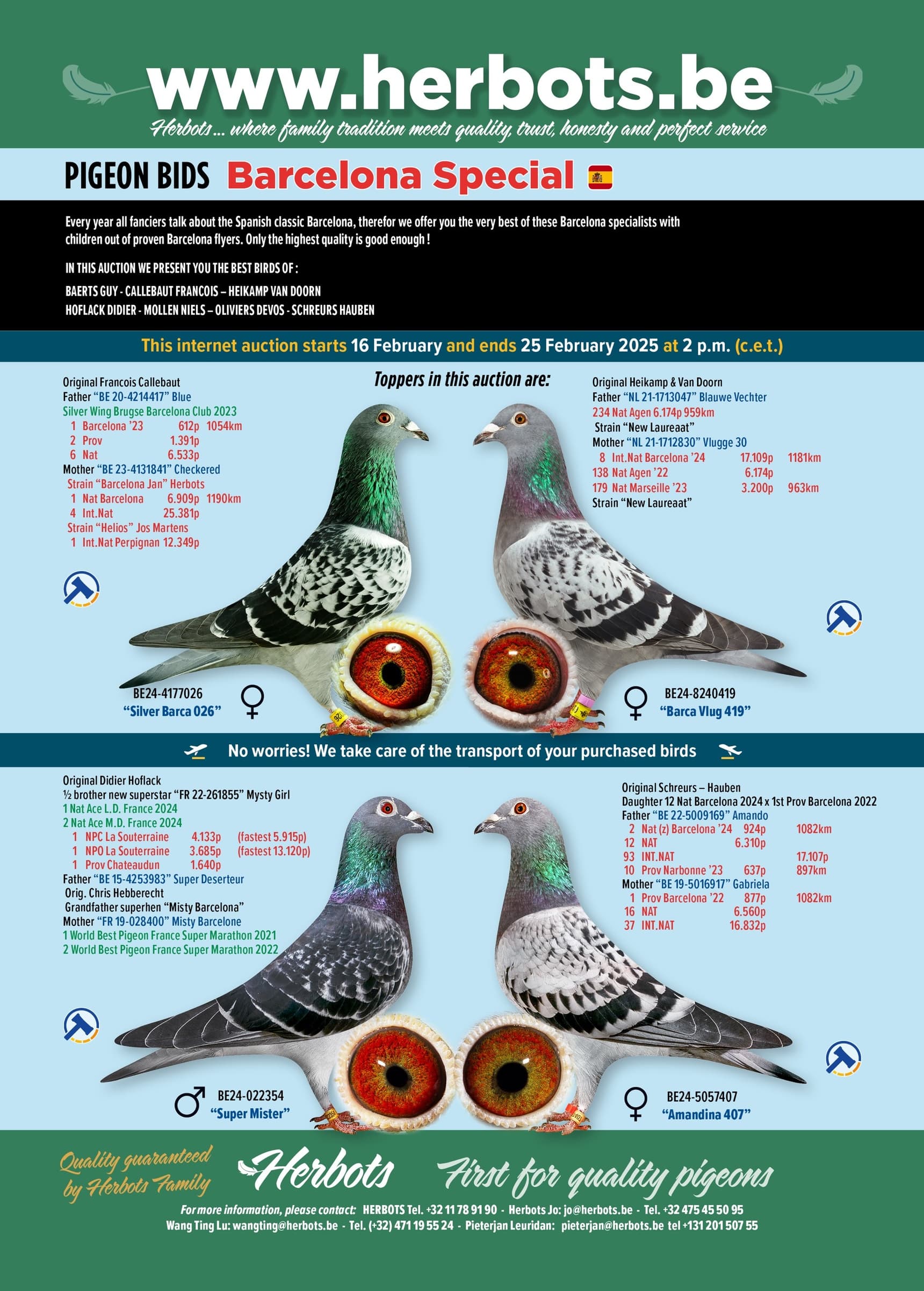 Every year all fanciers talk about the Spanish classic Barcelona, therefor we offer you the very best of these Barcelona specialists with children out of proven Barcelona flyers. Only the highest quality is good enough !