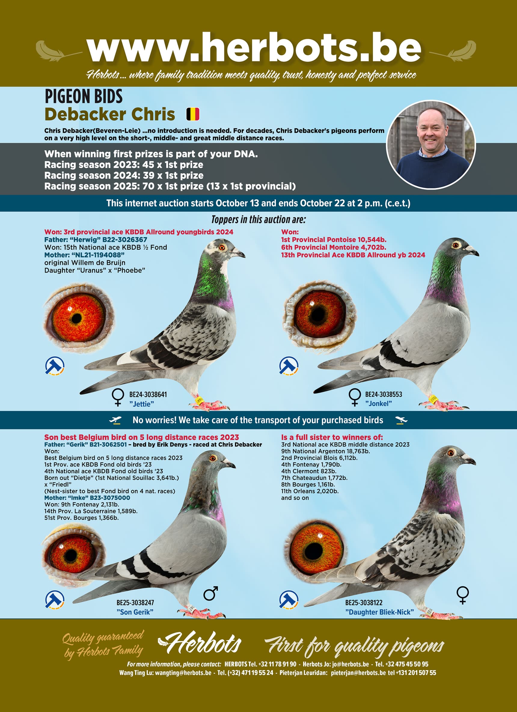In 2025, the power of the Debacker pigeons knew no bounds. They love to conjure up top performances from their wings every week.