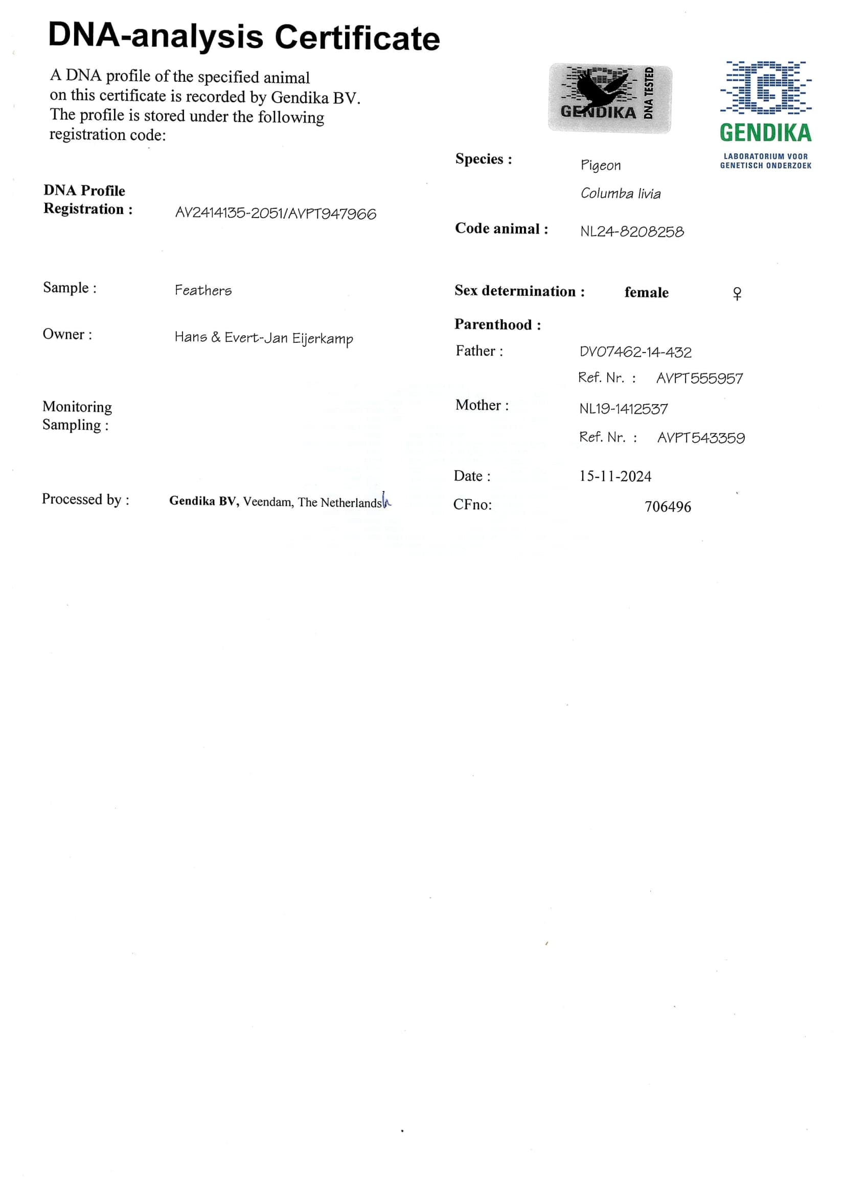 NL15-1897807 "Uniek" is mother to: