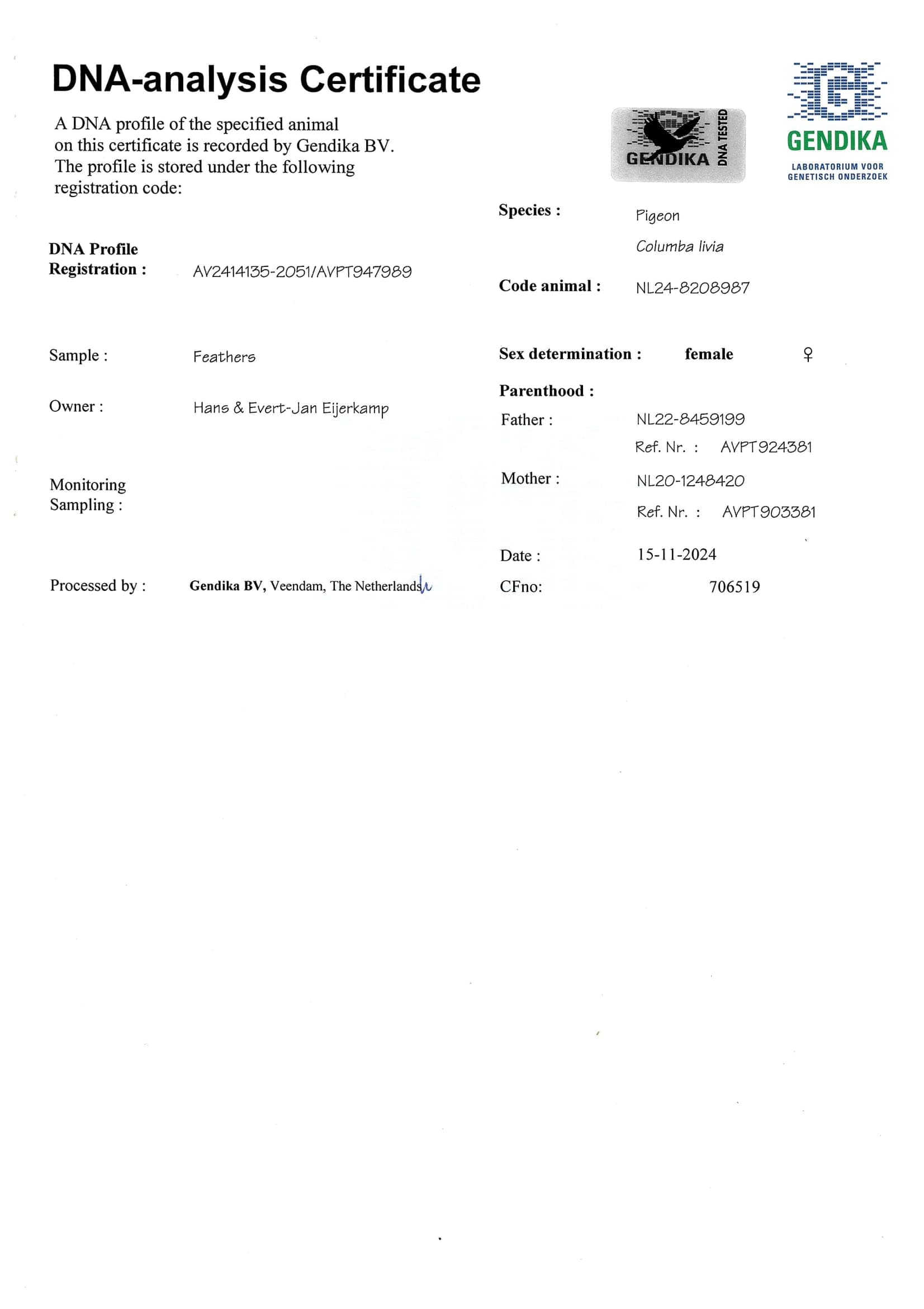 Breeder: EIJERKAMP HANS & EVERT-JAN 汉斯 & 艾佛特-杨·爱亚卡普