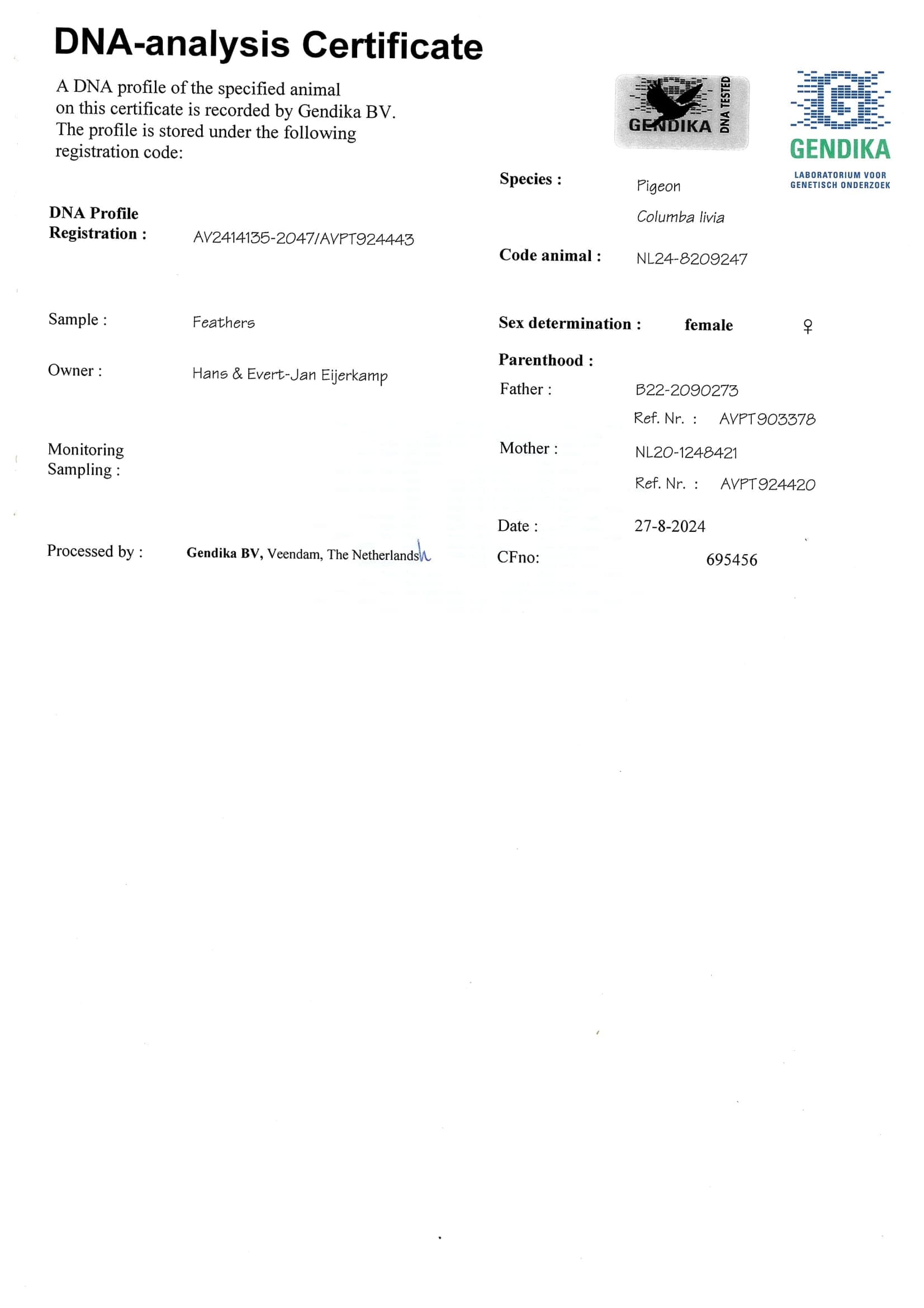 Breeder: EIJERKAMP HANS & EVERT-JAN 汉斯 & 艾佛特-杨·爱亚卡普
