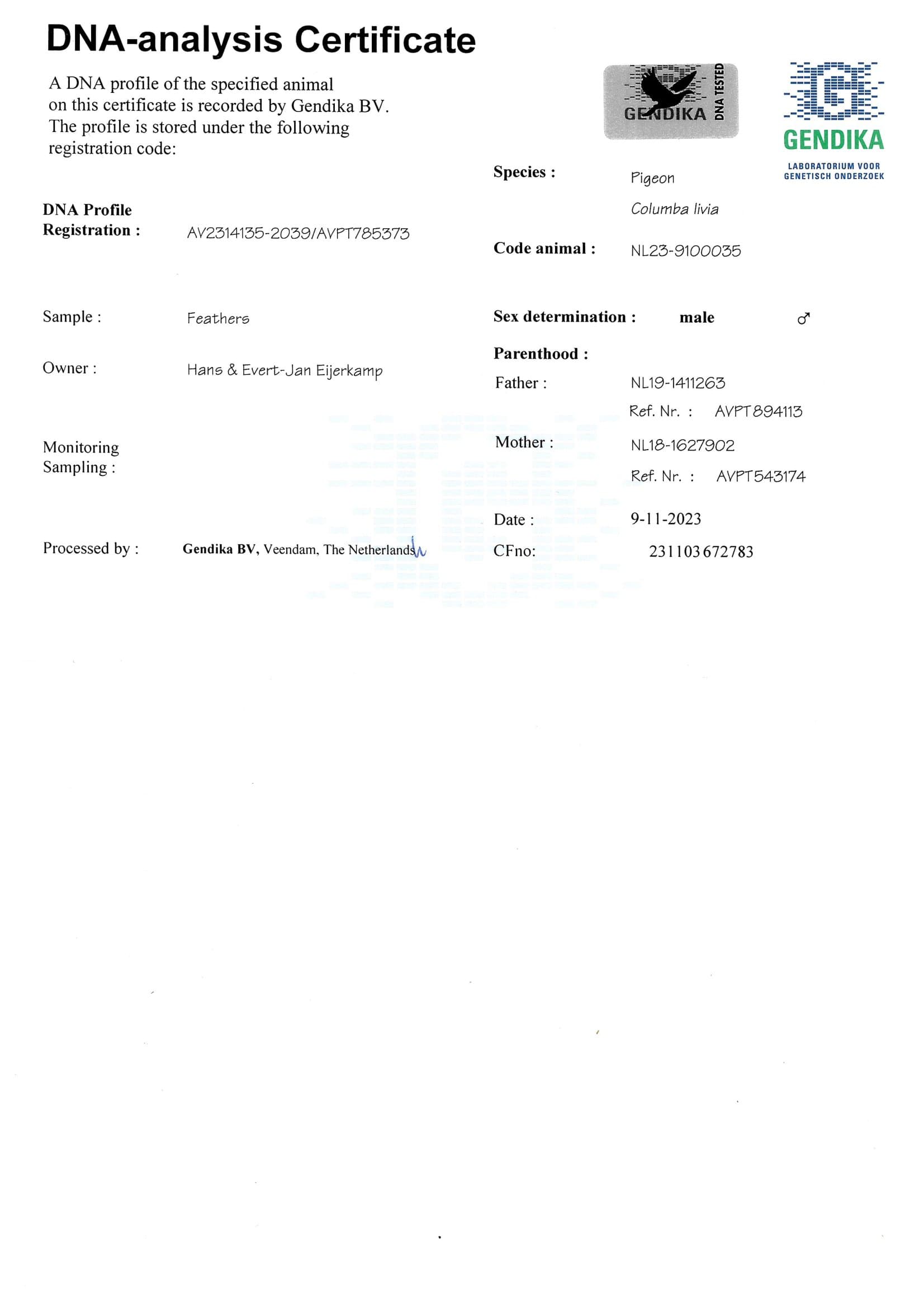 Breeder: EIJERKAMP HANS & EVERT-JAN 汉斯 & 艾佛特-杨·爱亚卡普