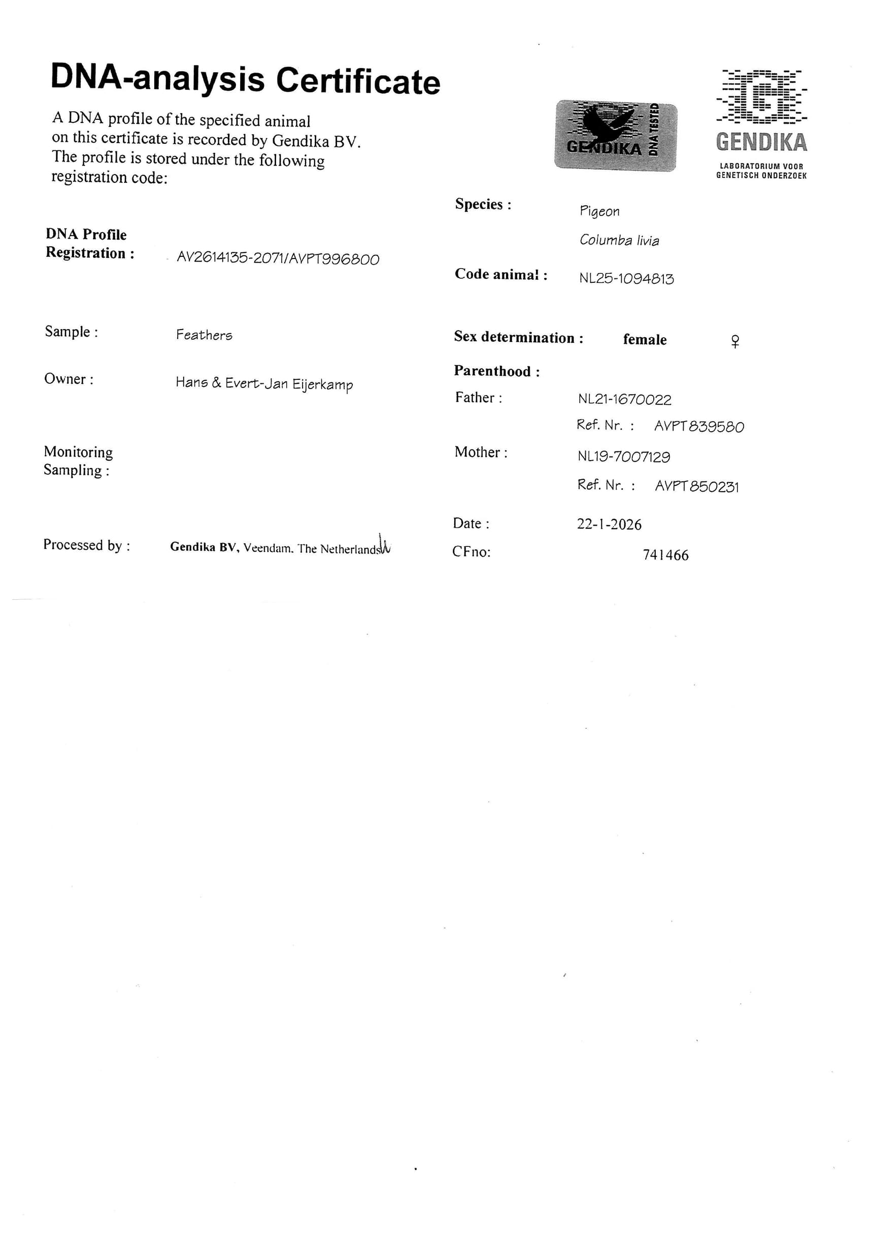 Breeder: EIJERKAMP HANS & EVERT-JAN 汉斯 & 艾佛特-杨·爱亚卡普