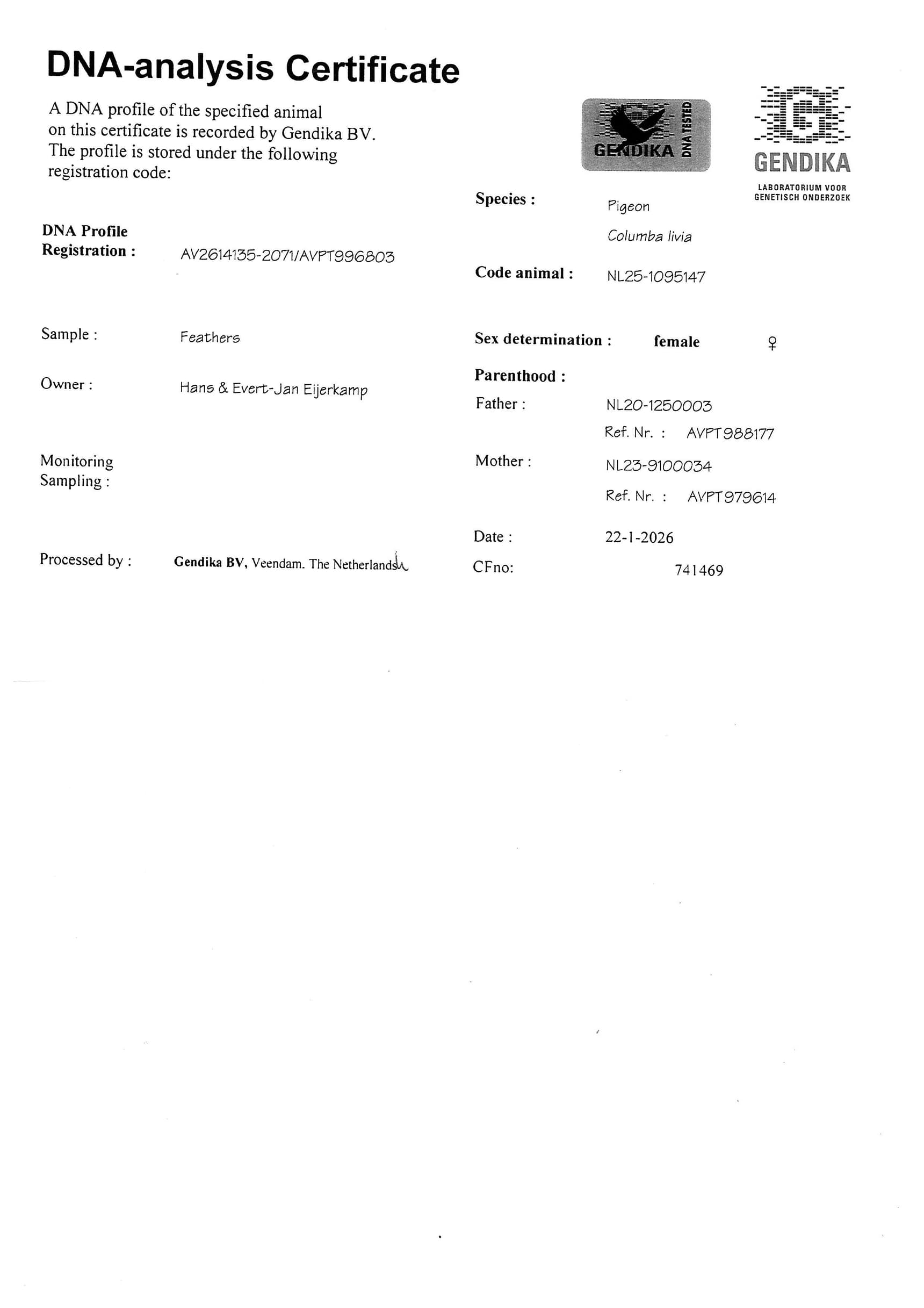 Breeder: EIJERKAMP HANS & EVERT-JAN 汉斯 & 艾佛特-杨·爱亚卡普