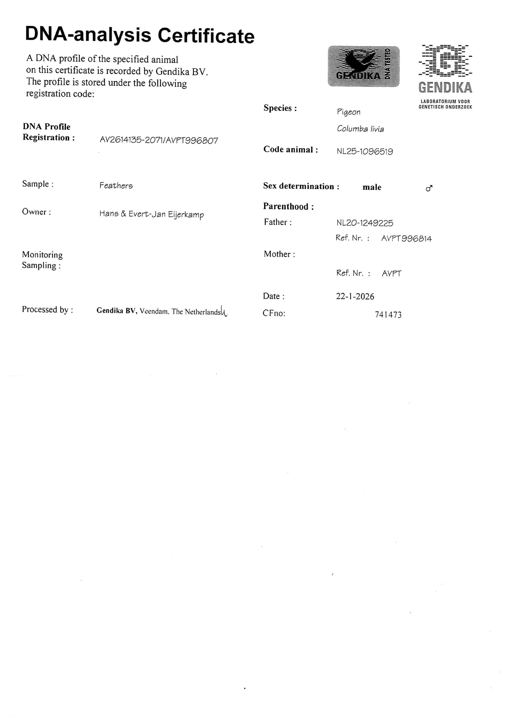 Born out “Grandson Nieuwe Olympiade” x “Granddaughter Nieuwe Olympiade”